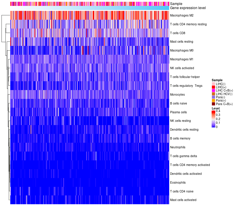 Liver hepatocellular carcinoma HCV (HBV+)(86), Liver hepatocellular carcinoma HCV (HBV-)(19), Liver hepatocellular carcinoma (HBV+)(209), Liver hepatocellular carcinoma (HBV+)(60), Paracancerous HCV (HBV+)(4), Paracancerous (HBV-)(28), Paracancerous (HBV+)(18) |