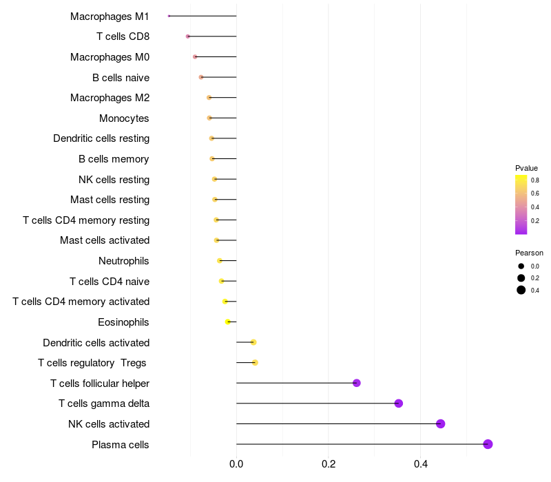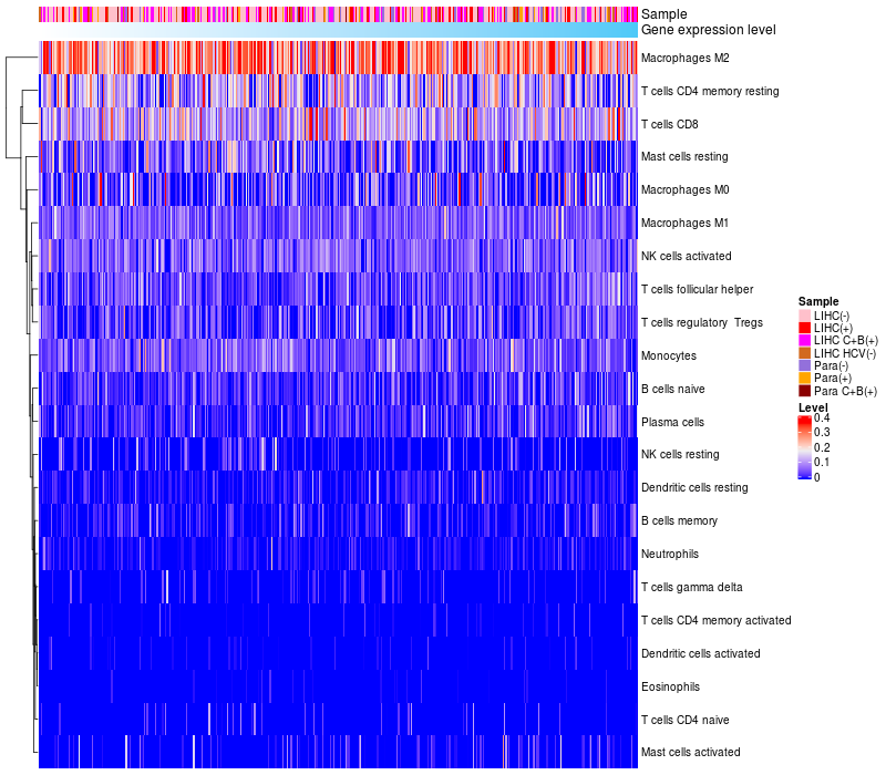Relationship between gene expression and immune infiltrating cell level