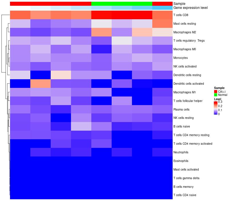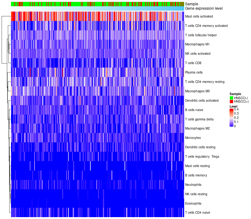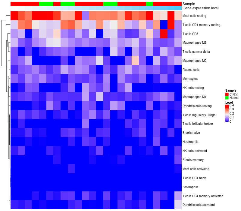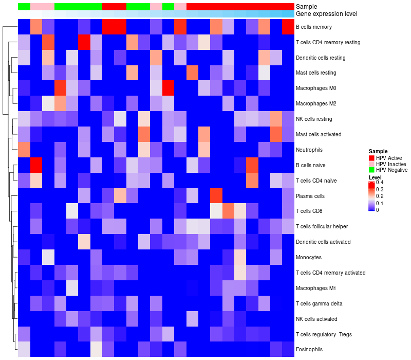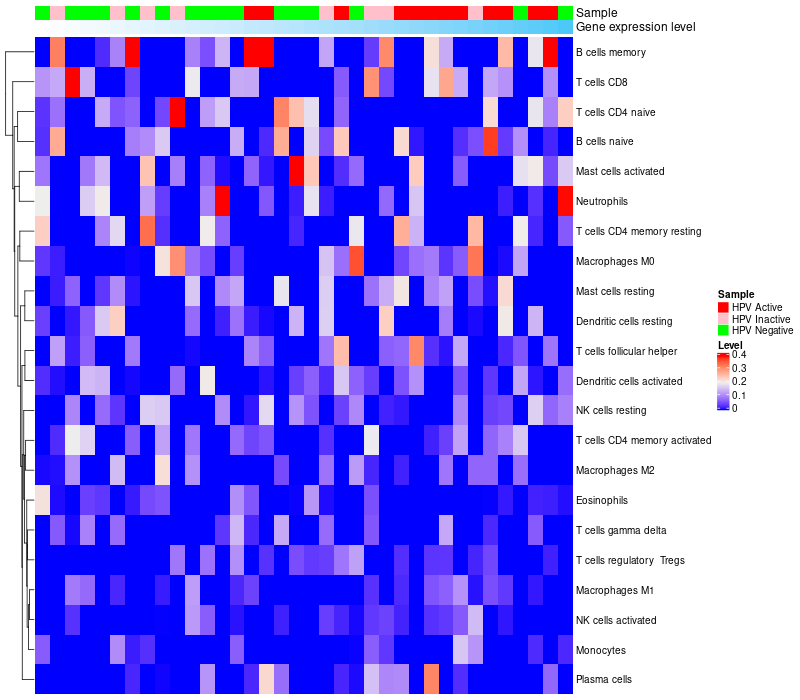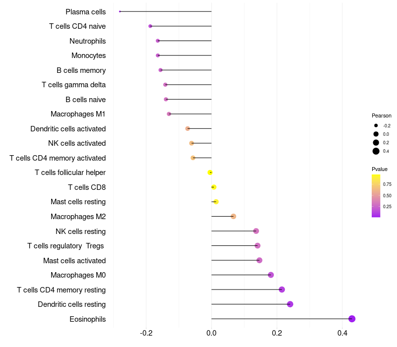 Lollipop of LOC100129148 expression and immune infiltrating cell level correlation result in HPV+ samples