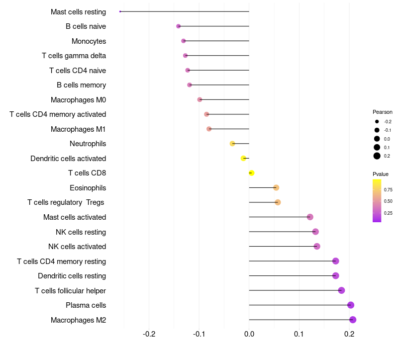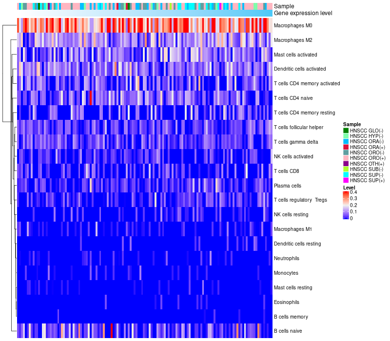 HeatMap of cell type fractions in all samples Lollipop of LOC100130899 expression and immune infiltrating cell level correlation result in HPV+ samples