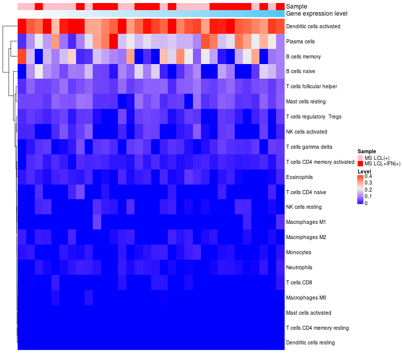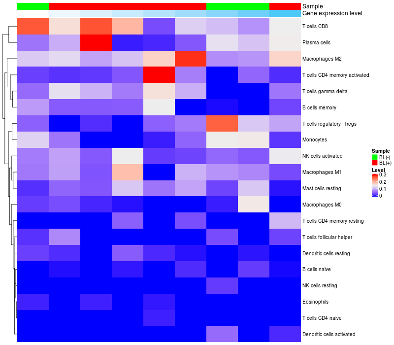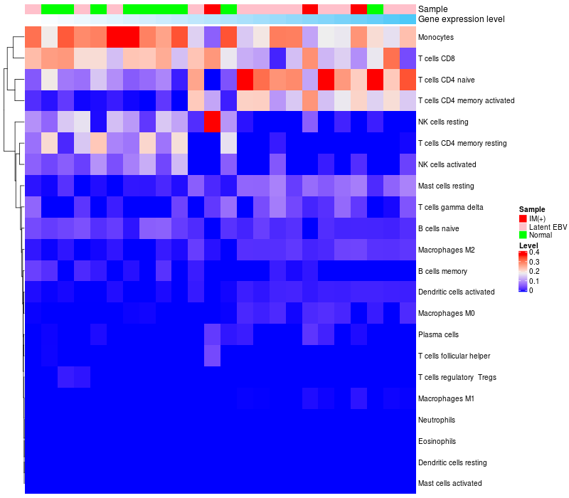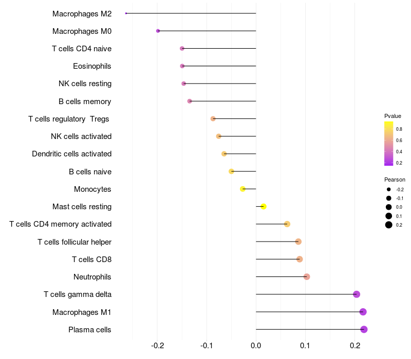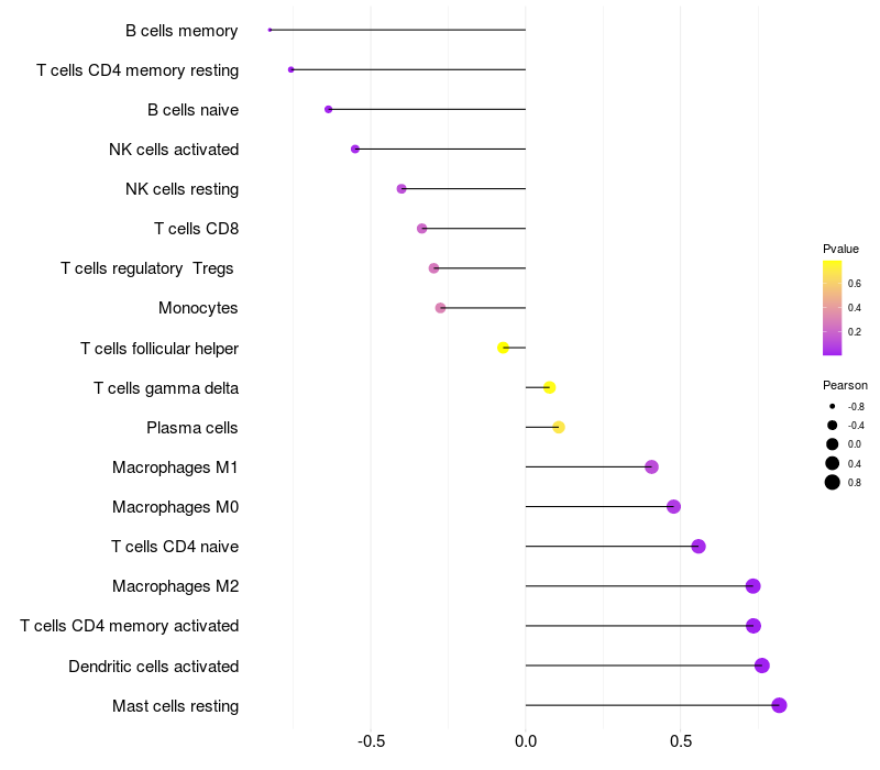 Lollipop of LOC100132154 expression and immune infiltrating cell level correlation result in EBV+ samples