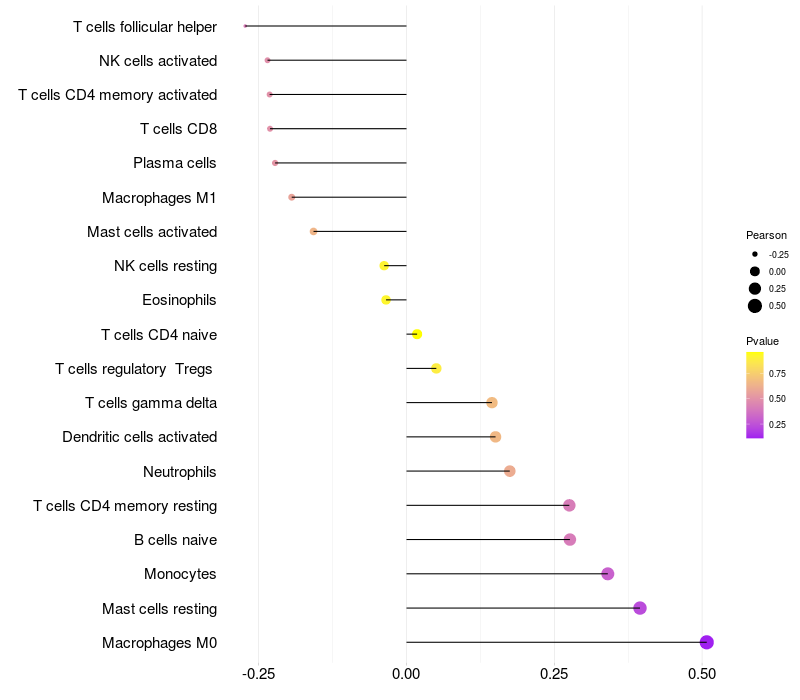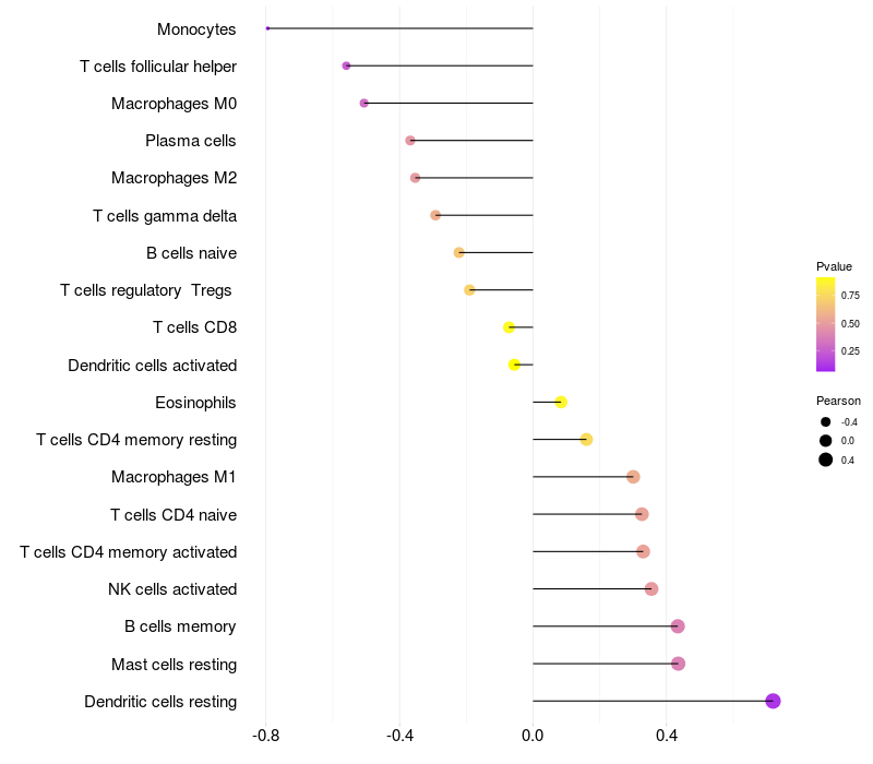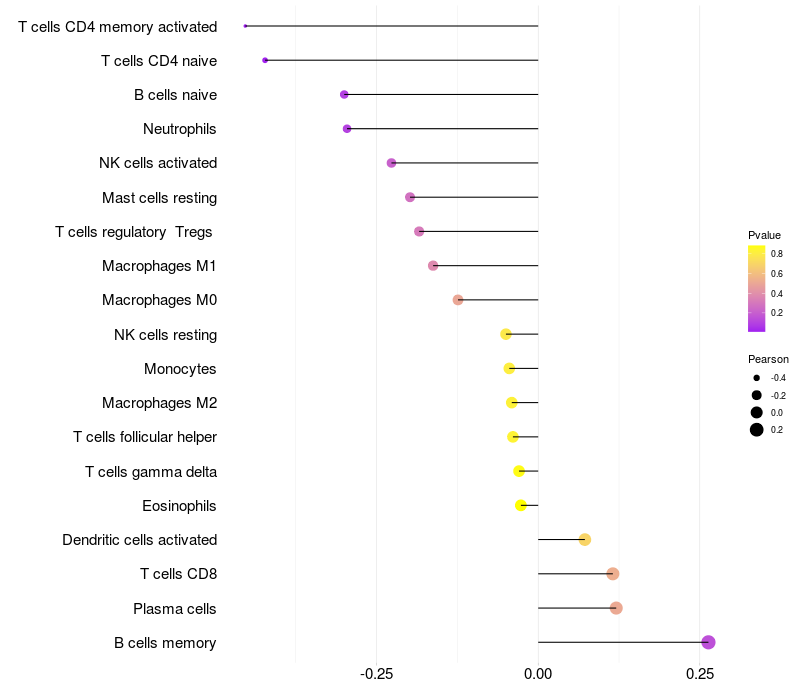 Lollipop of LOC100133286 expression and immune infiltrating cell level correlation result in EBV+ samples