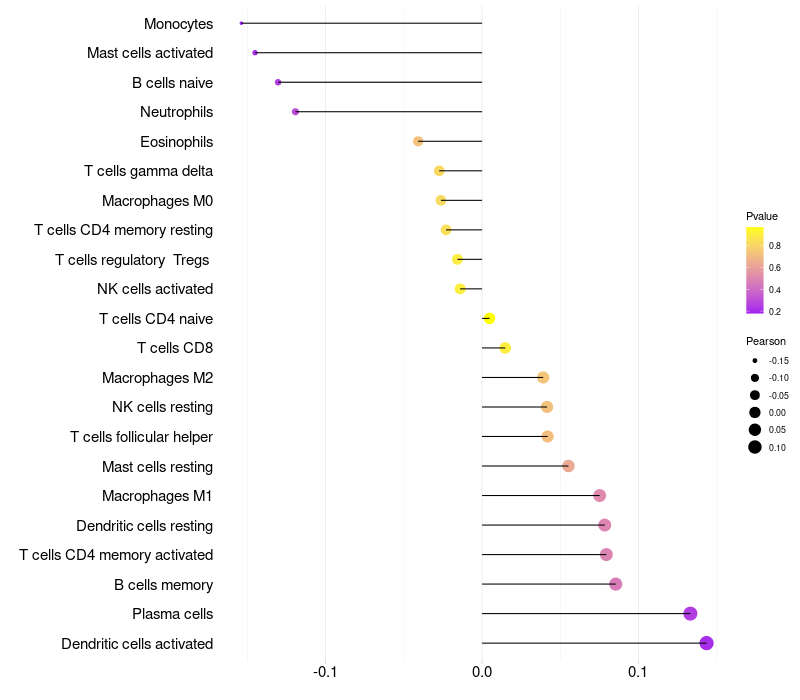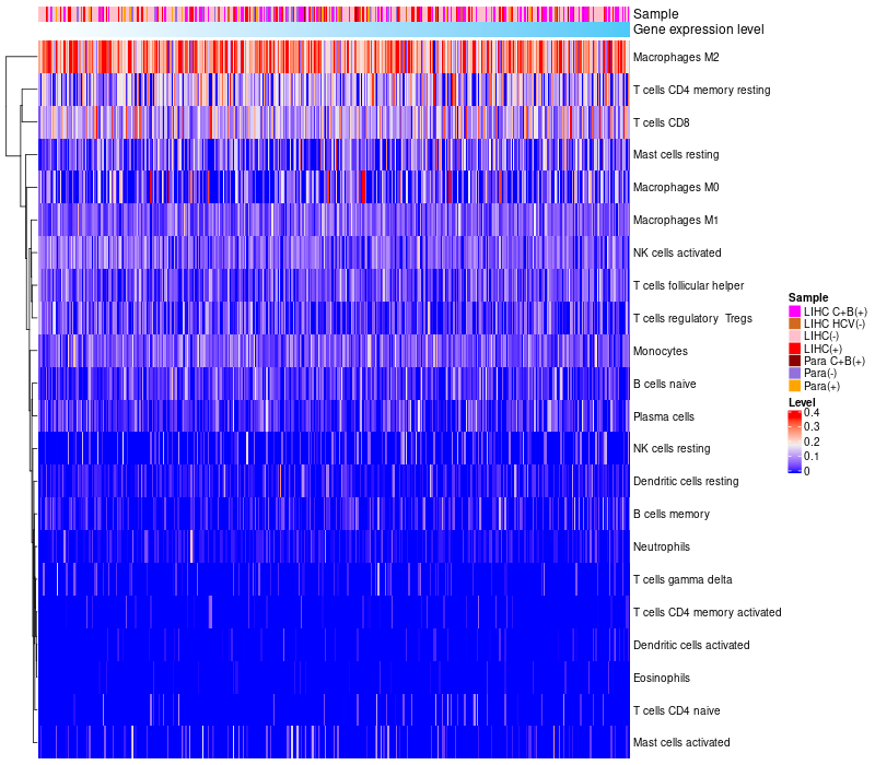 Relationship between gene expression and immune infiltrating cell level