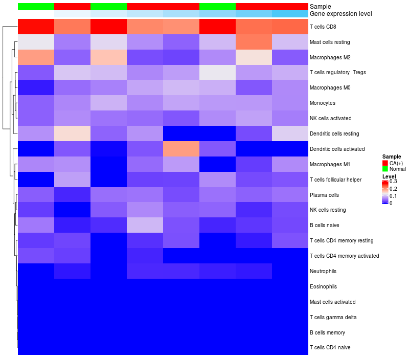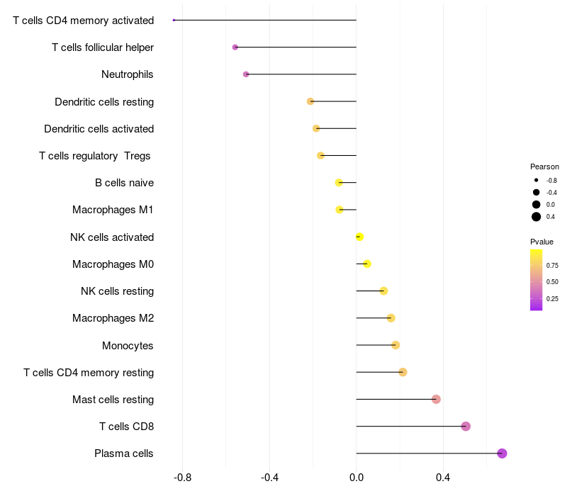 Relationship between gene expression and immune infiltrating cell level