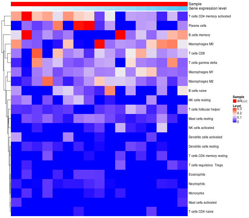 Relationship between gene expression and immune infiltrating cell level