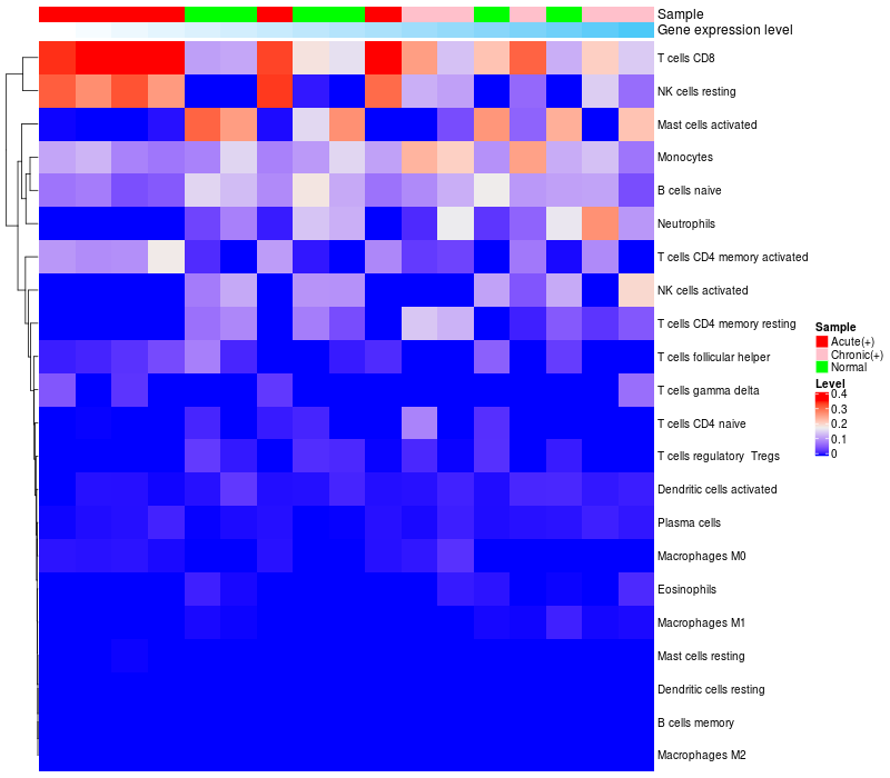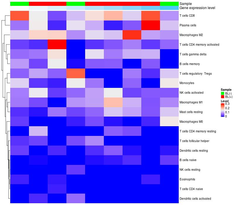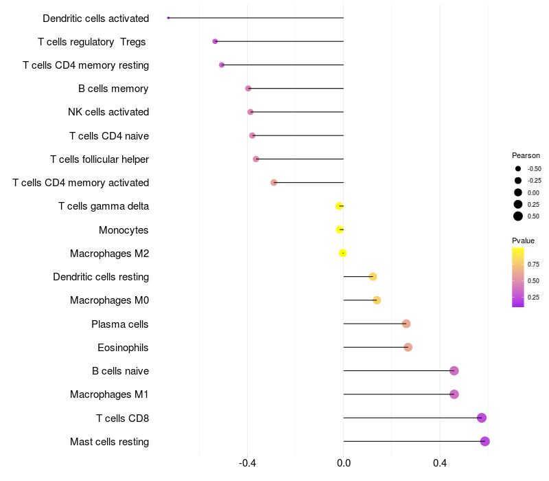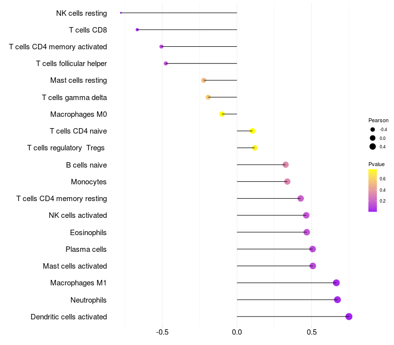Relationship between gene expression and immune infiltrating cell level