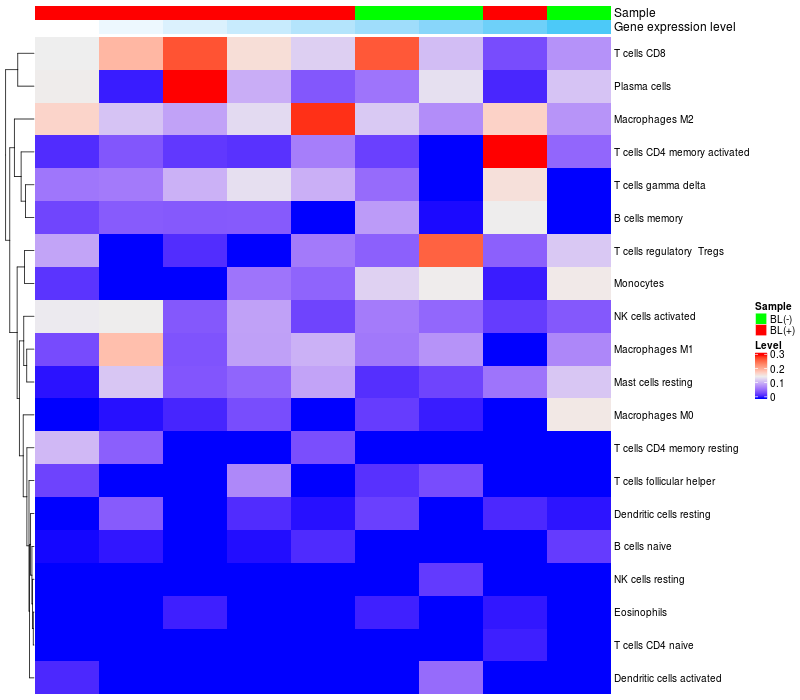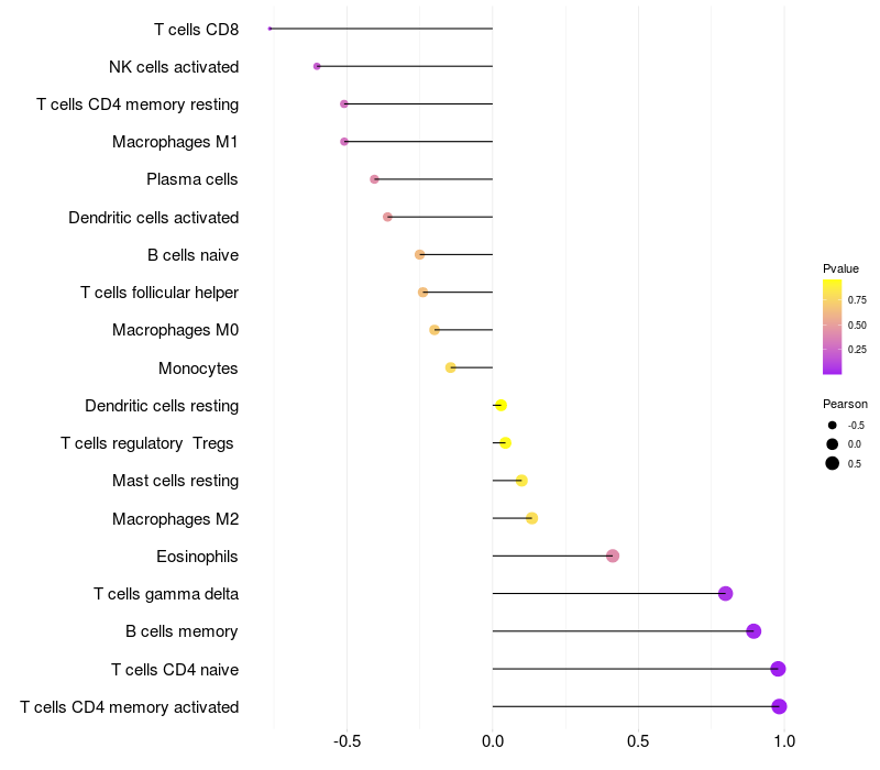 Relationship between gene expression and immune infiltrating cell level