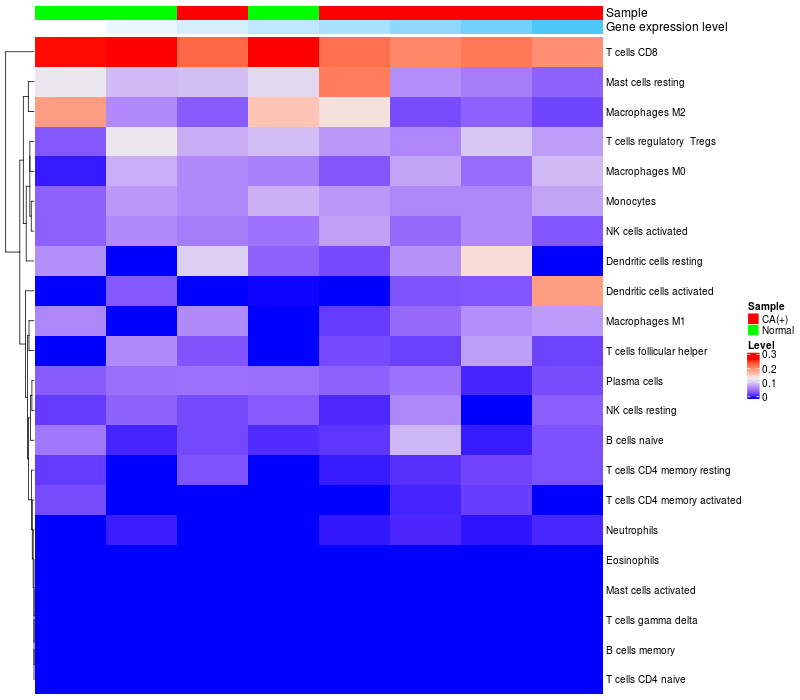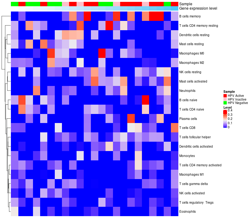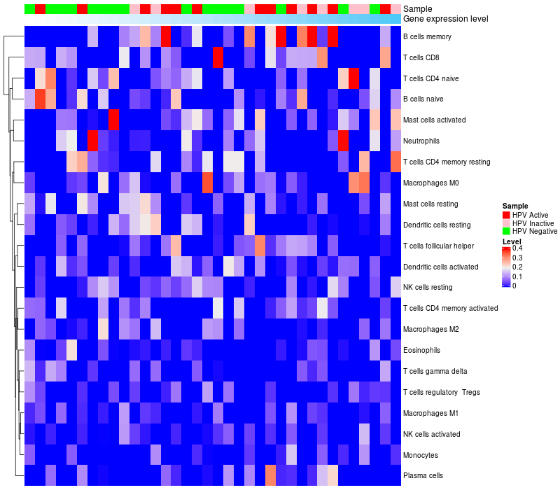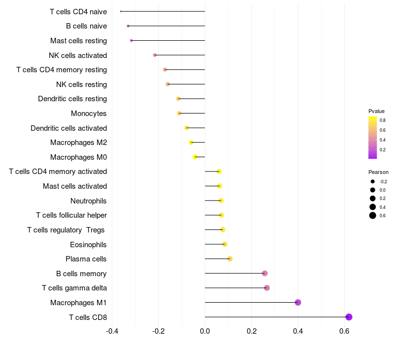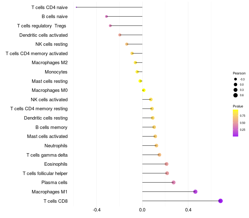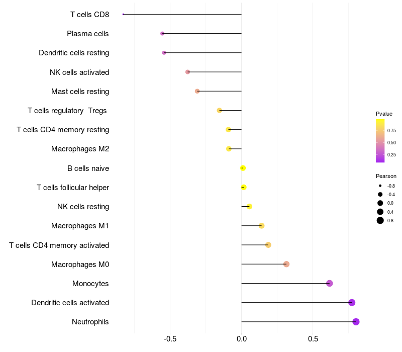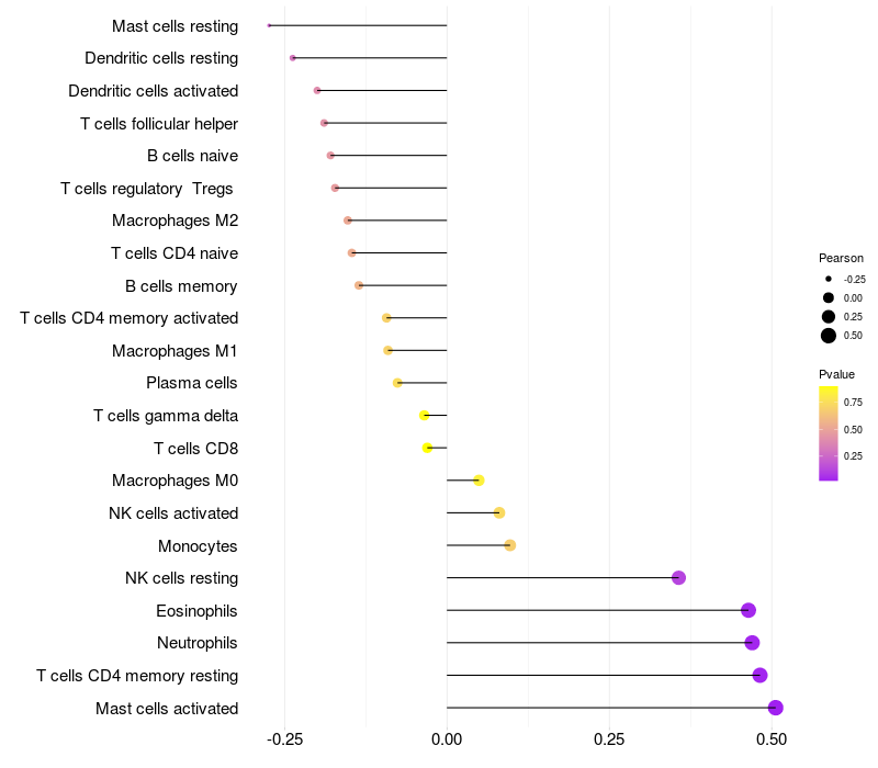 Lollipop of LOC100506675 expression and immune infiltrating cell level correlation result in HPV+ samples