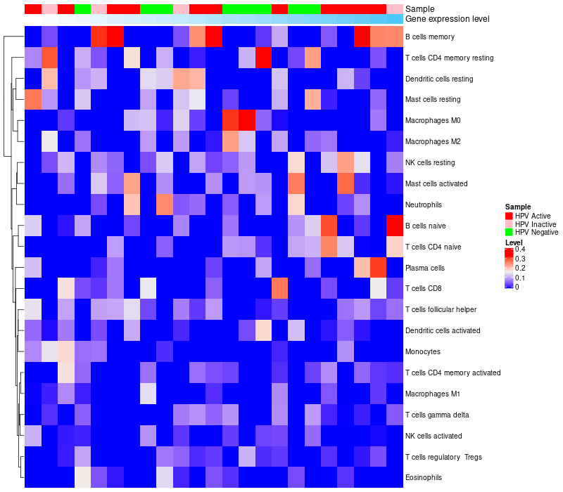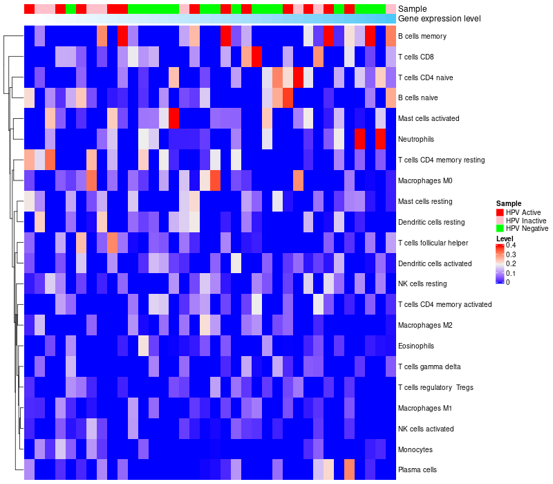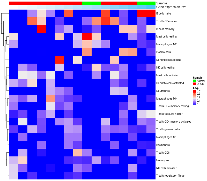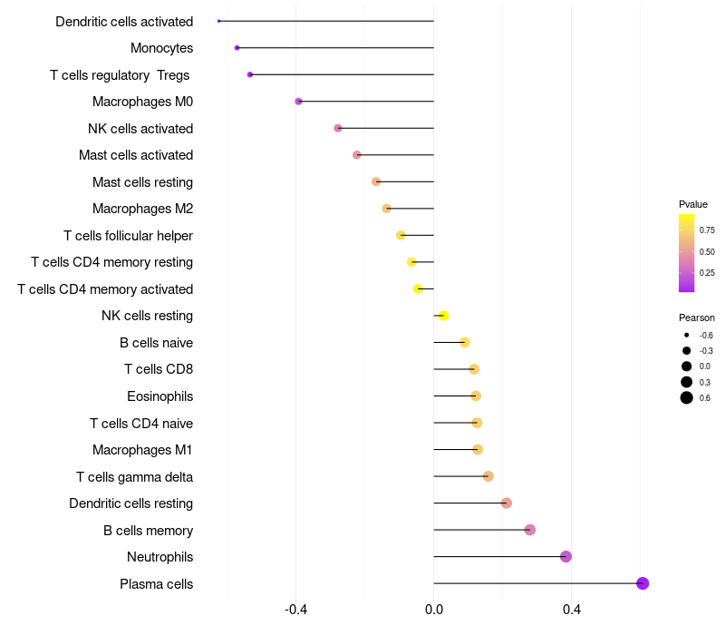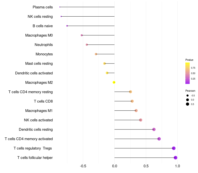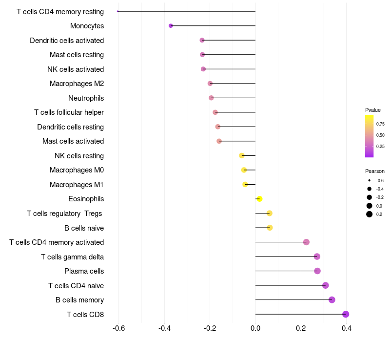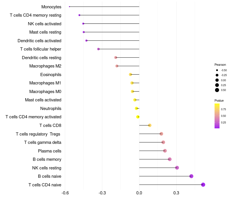 Lollipop of LOC100507006 expression and immune infiltrating cell level correlation result in HPV+ samples
