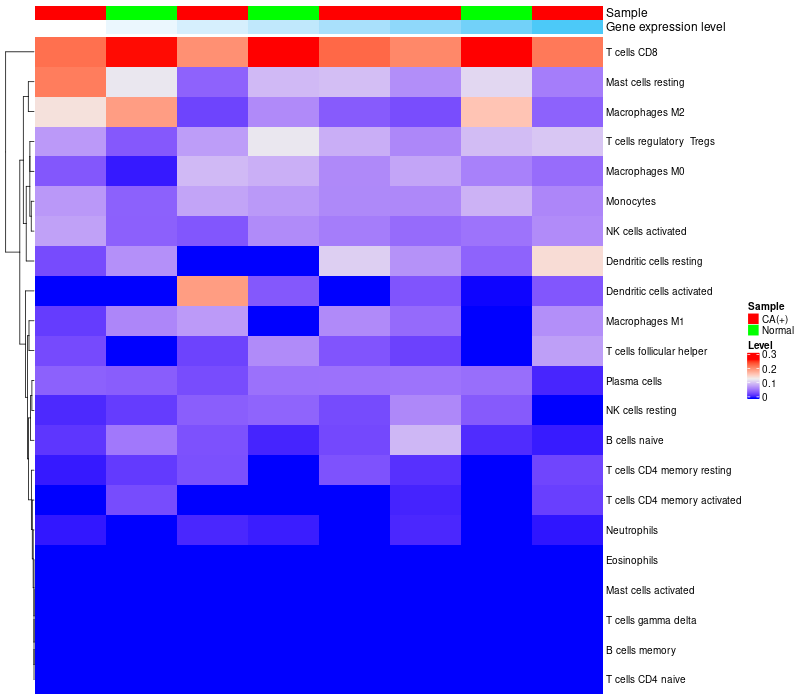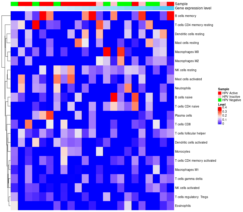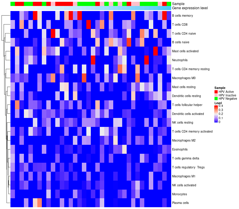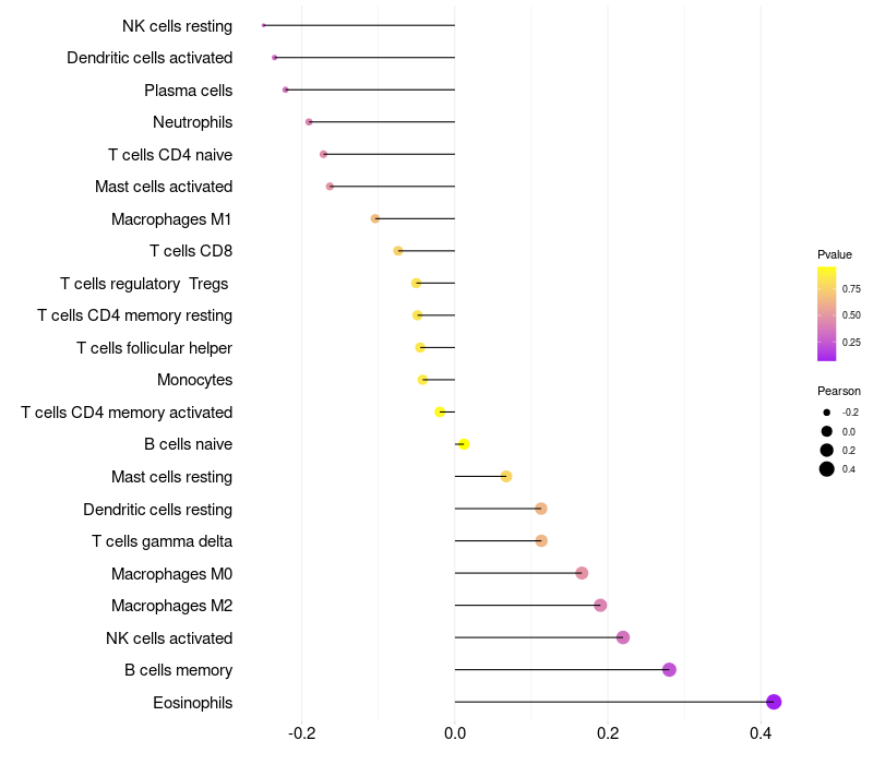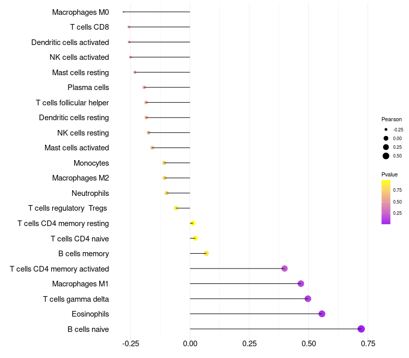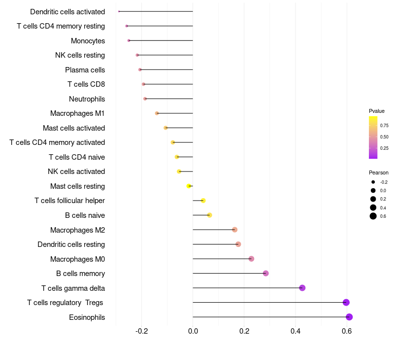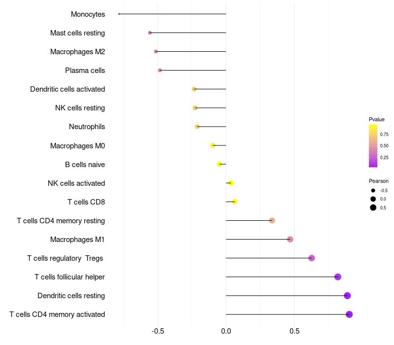 Lollipop of LOC100507443 expression and immune infiltrating cell level correlation result in HPV+ samples