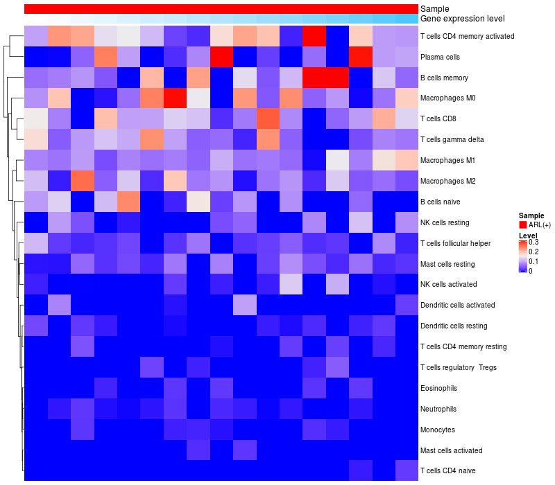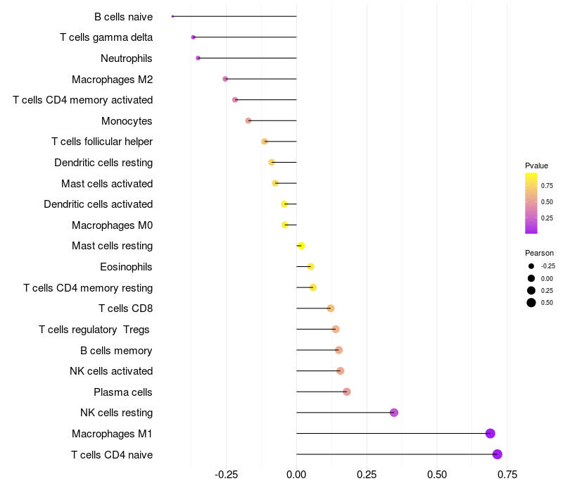 Relationship between gene expression and immune infiltrating cell level