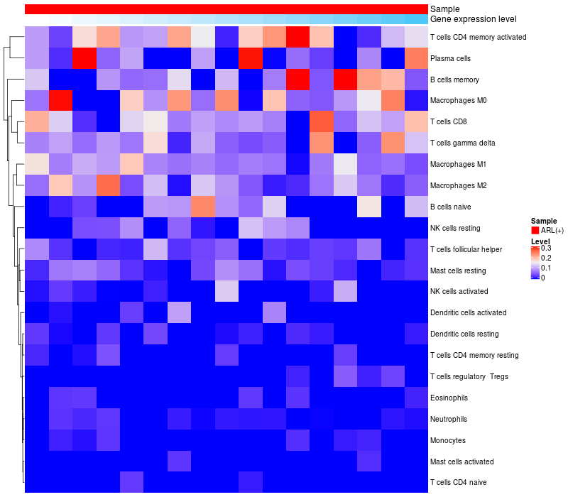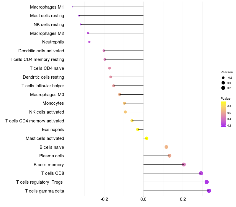 Relationship between gene expression and immune infiltrating cell level