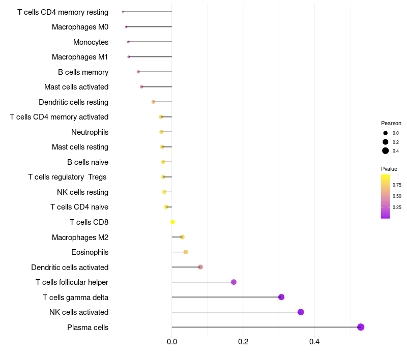 Relationship between gene expression and immune infiltrating cell level