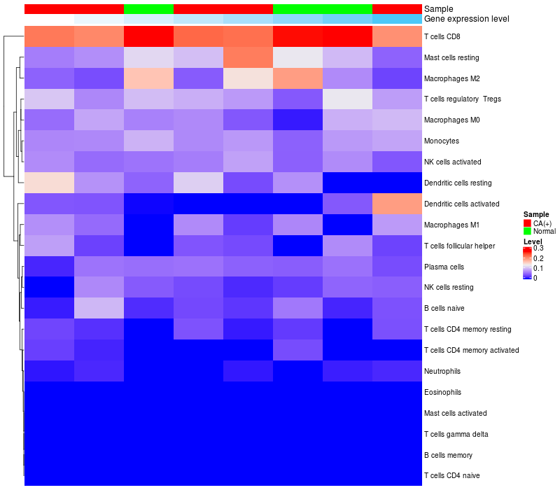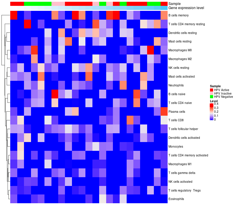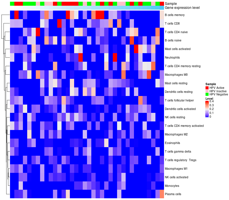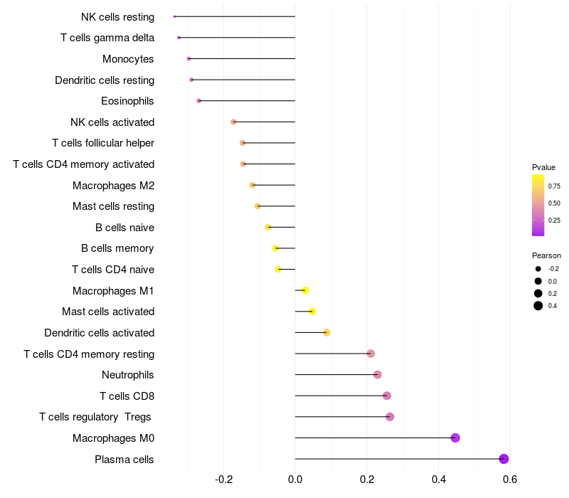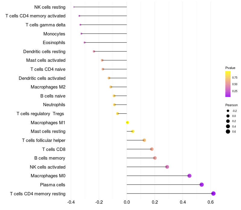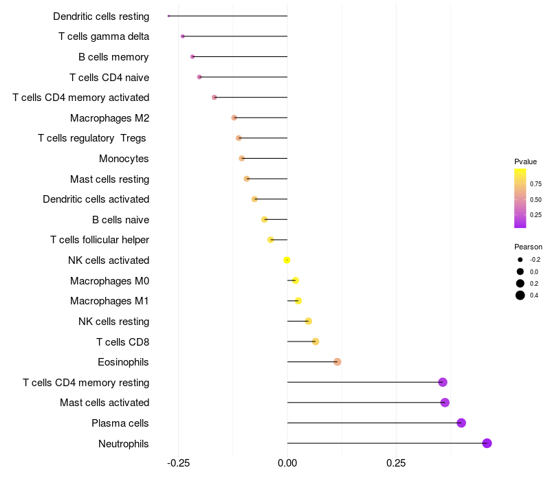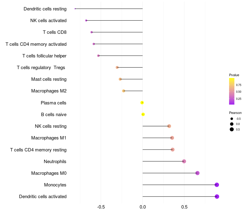 Lollipop of LOC158434 expression and immune infiltrating cell level correlation result in HPV+ samples