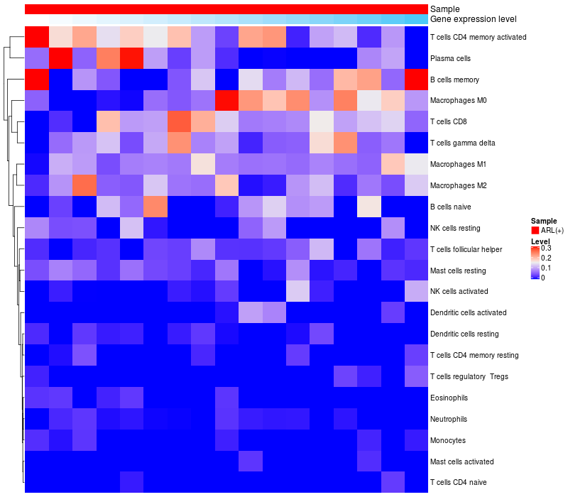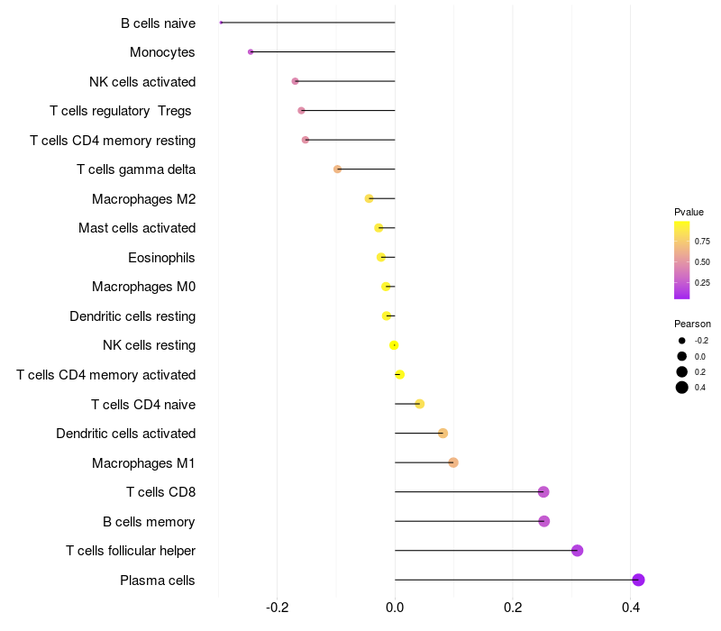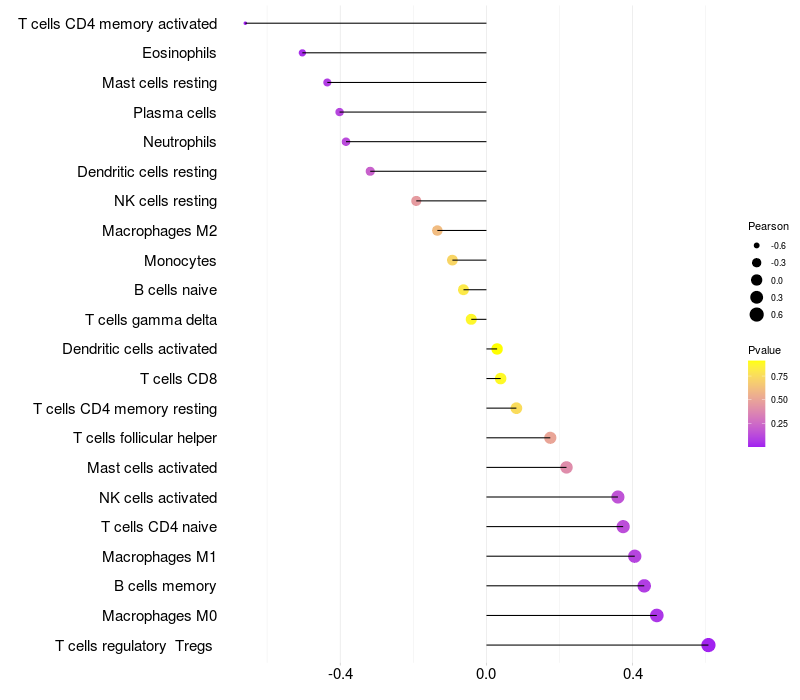 Relationship between gene expression and immune infiltrating cell level
