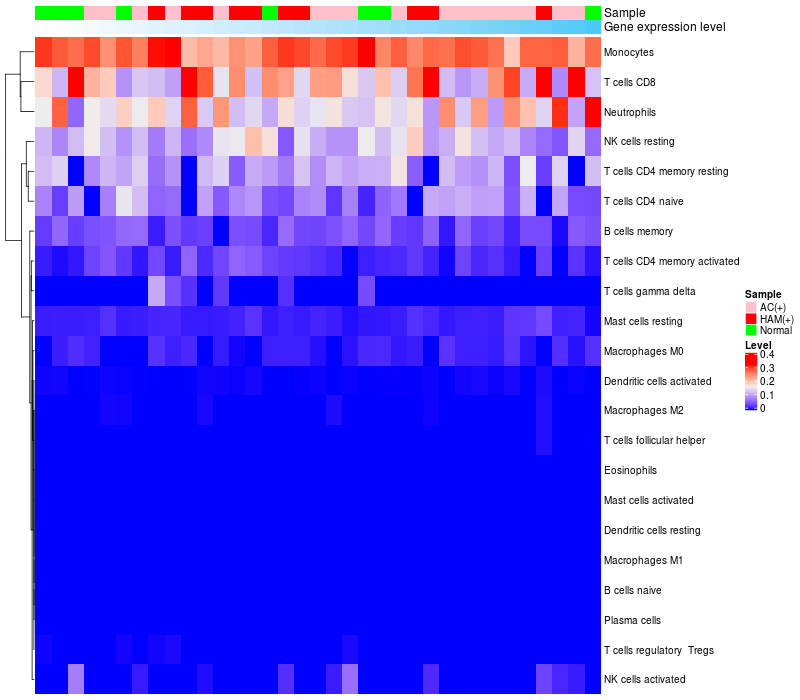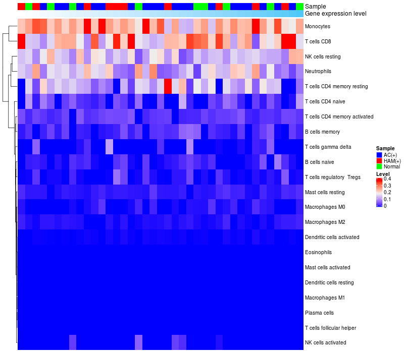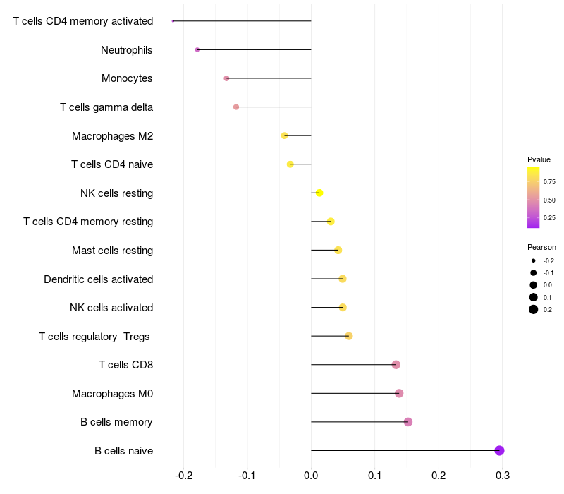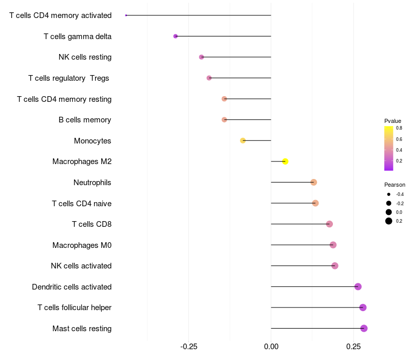 Relationship between gene expression and immune infiltrating cell level