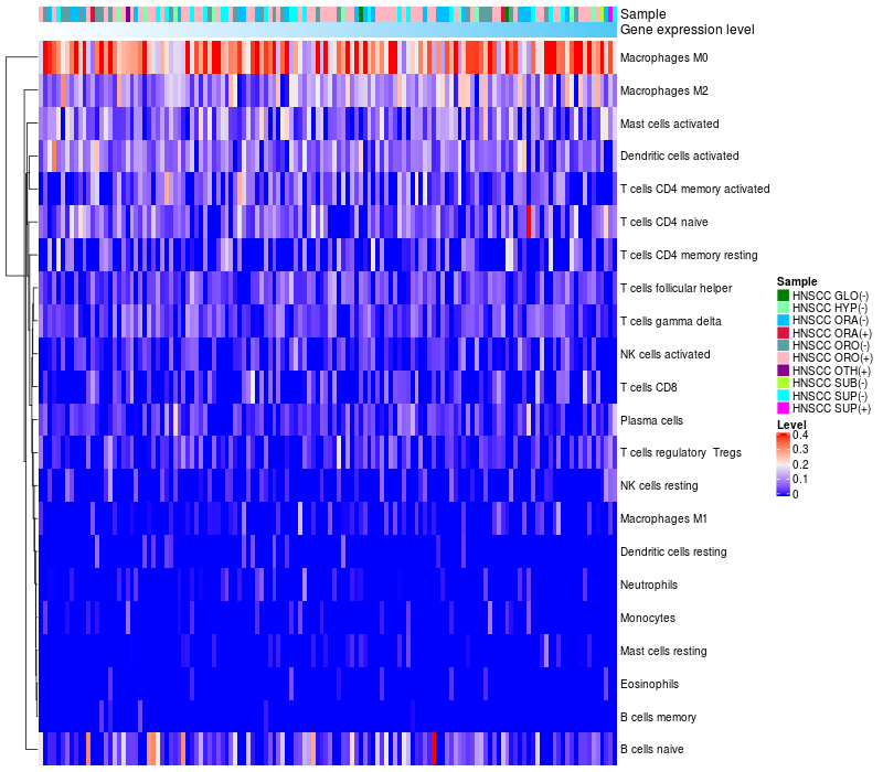 Head and neck Squamous cell carcinomas GLOTTIC LARYNX (EBV-)(2), Head and neck Squamous cell carcinomas HYPOPHARYNX (EBV-)(9), Head and neck Squamous cell carcinomas ORAL CAVITY (EBV-)(23), Head and neck Squamous cell carcinomas ORAL CAVITY (EBV+)(2), Head and neck Squamous cell carcinomas OROPHARYNX (EBV-)(22), Head and neck Squamous cell carcinomas OROPHARYNX (EBV+)(54), Head and neck Squamous cell carcinomas OTHER (EBV+)(1), Head and neck Squamous cell carcinomas SUBGLOTTIC LARYNX (EBV-)(1), Head and neck Squamous cell carcinomas SUPRAGLOTTIC (EBV-)(19), Squamous cell carcinomas SUPRAGLOTTIC (EBV+)(1) |