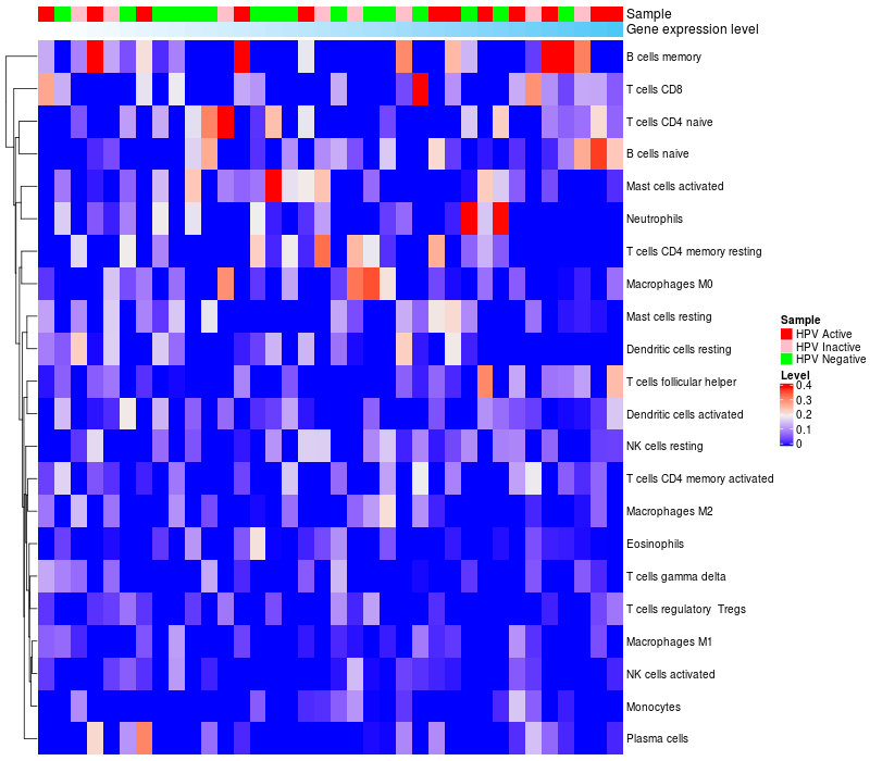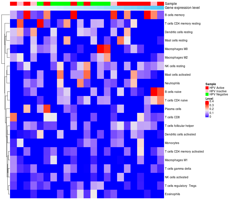 Oropharyngeal cancers HPV Active (12), Oropharyngeal cancers HPV Inactive (8), Oropharyngeal cancers HPV Negative (16) |