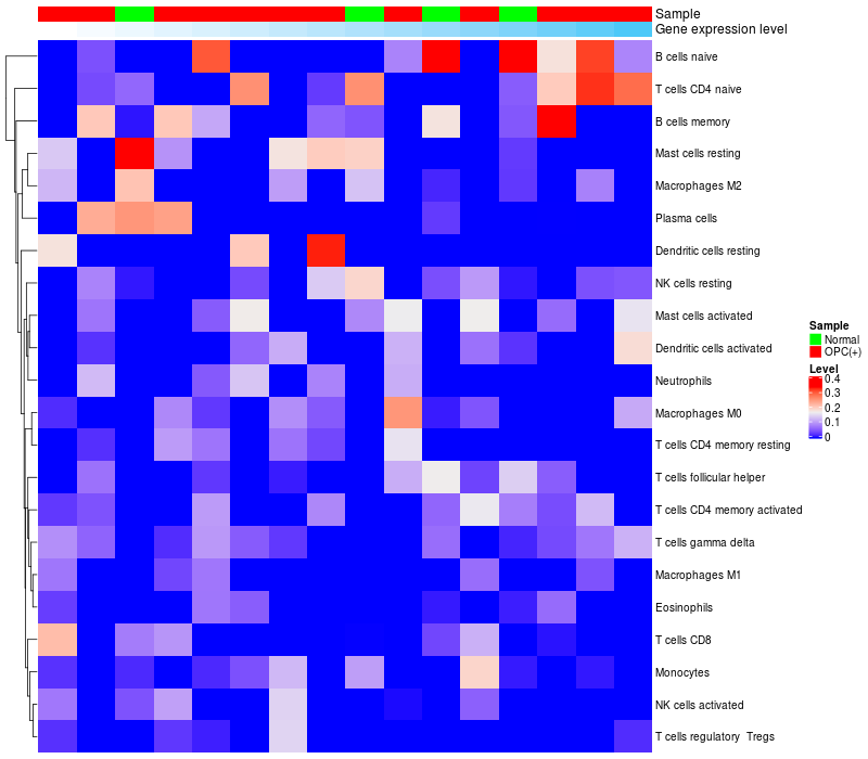 Oropharyngeal cancers (HPV+)(12), Normal (4) |