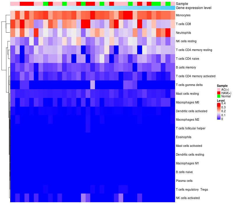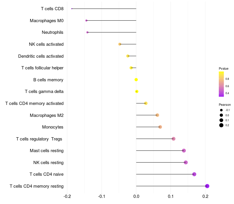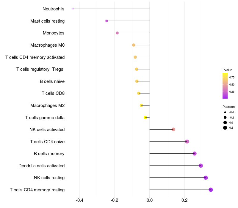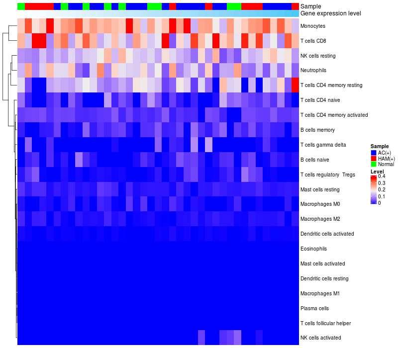 Relationship between gene expression and immune infiltrating cell level