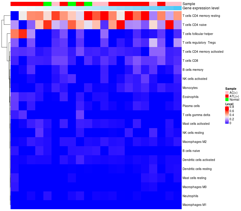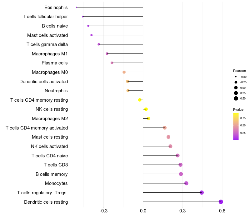 Relationship between gene expression and immune infiltrating cell level