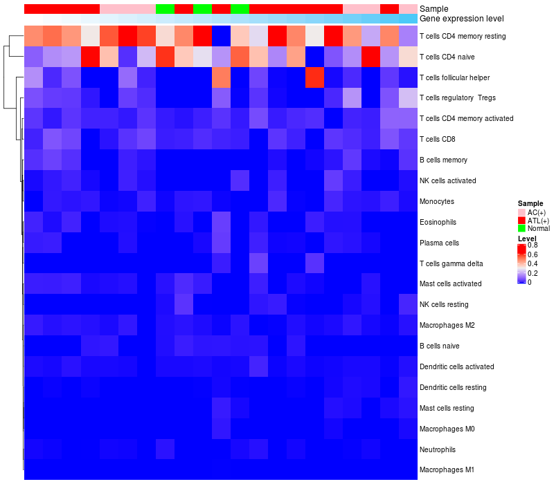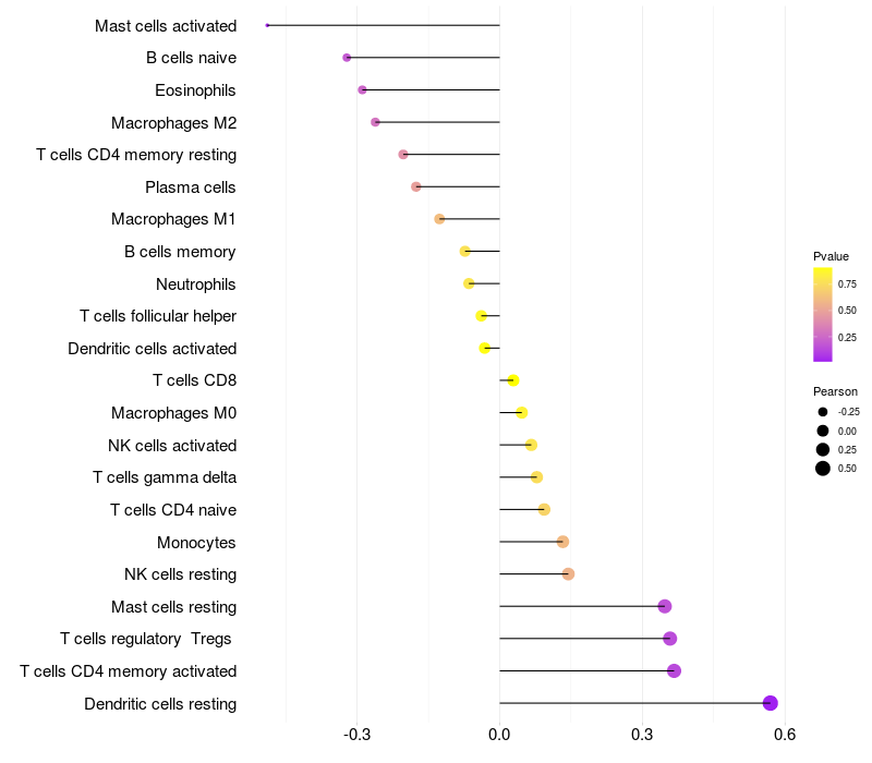 Relationship between gene expression and immune infiltrating cell level