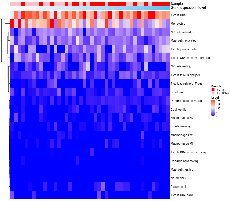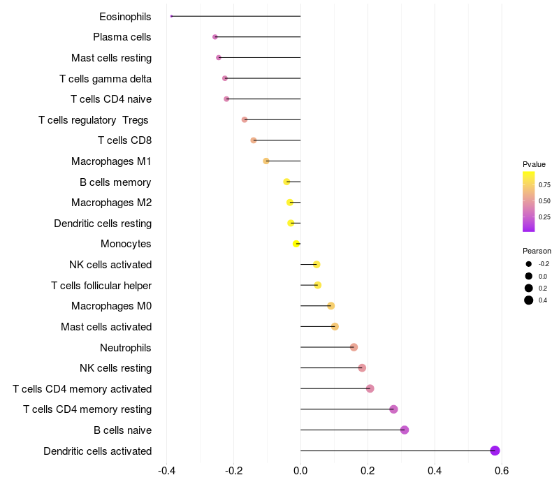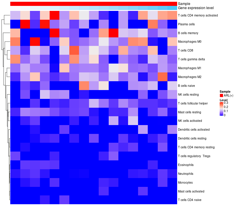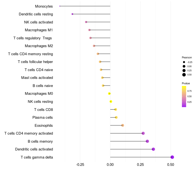 Relationship between gene expression and immune infiltrating cell level