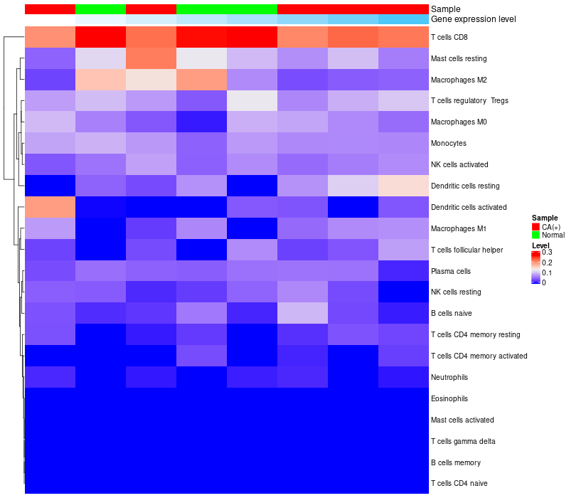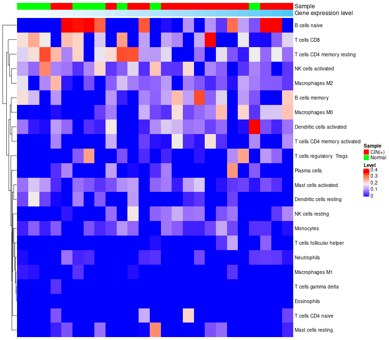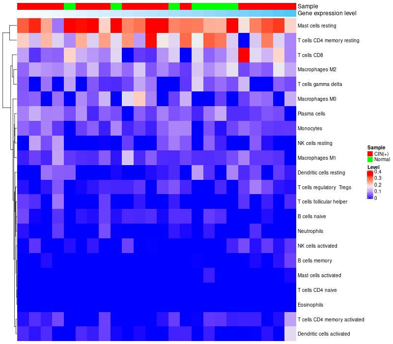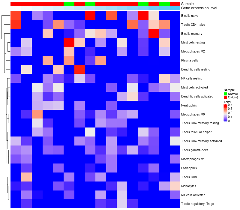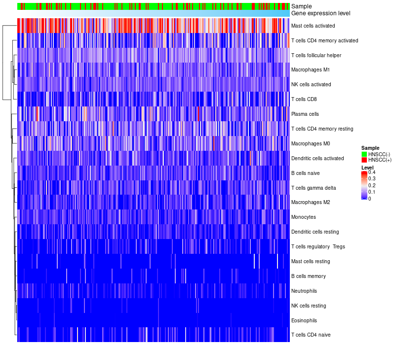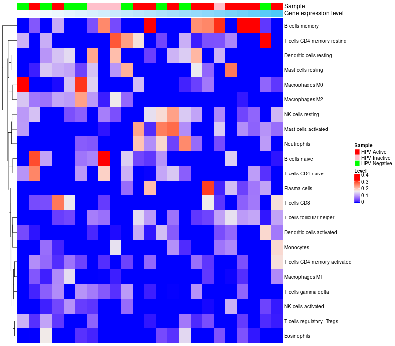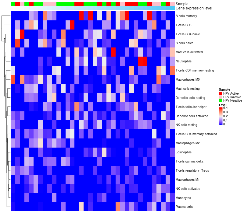 Lollipop of LOC390705 expression and immune infiltrating cell level correlation result in HPV+ samples