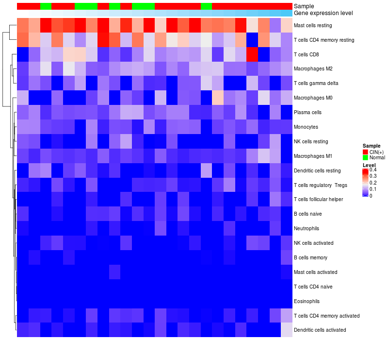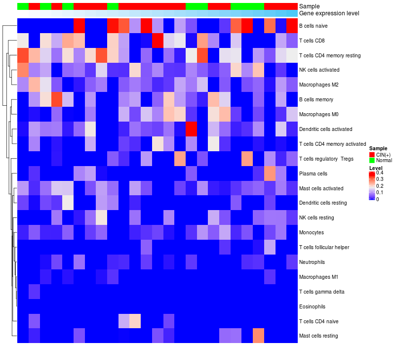 Normal (10), Cervical intraepithelial neoplasia (HPV+)(15) |