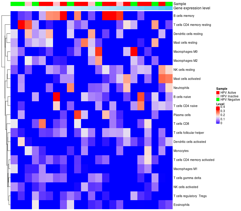Oropharyngeal cancers HPV Active (12), Oropharyngeal cancers HPV Inactive (8), Oropharyngeal cancers HPV Negative (16) |