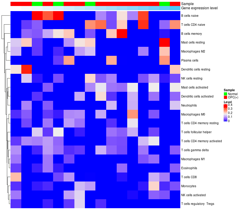 Oropharyngeal cancers (HPV+)(12), Normal (4) |