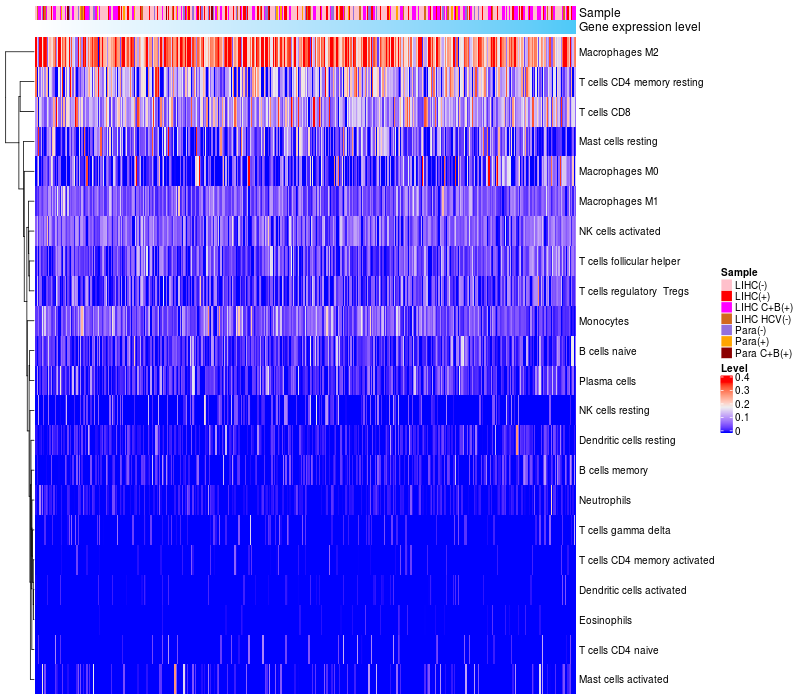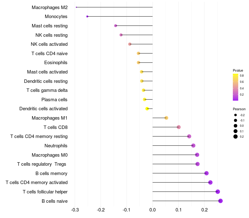 Relationship between gene expression and immune infiltrating cell level