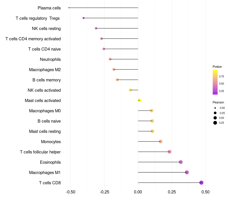 Lollipop of LOC642361 expression and immune infiltrating cell level correlation result in HBV+ Chronic HBV (CHB) infection samples