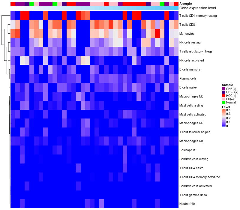 Relationship between gene expression and immune infiltrating cell level