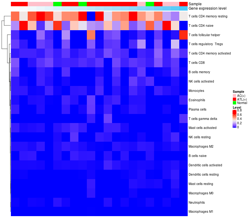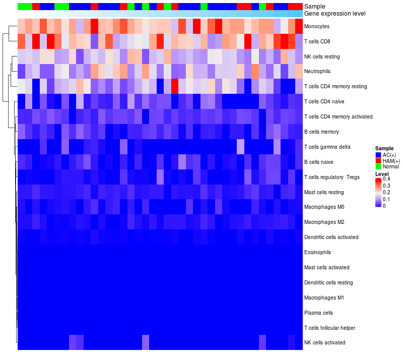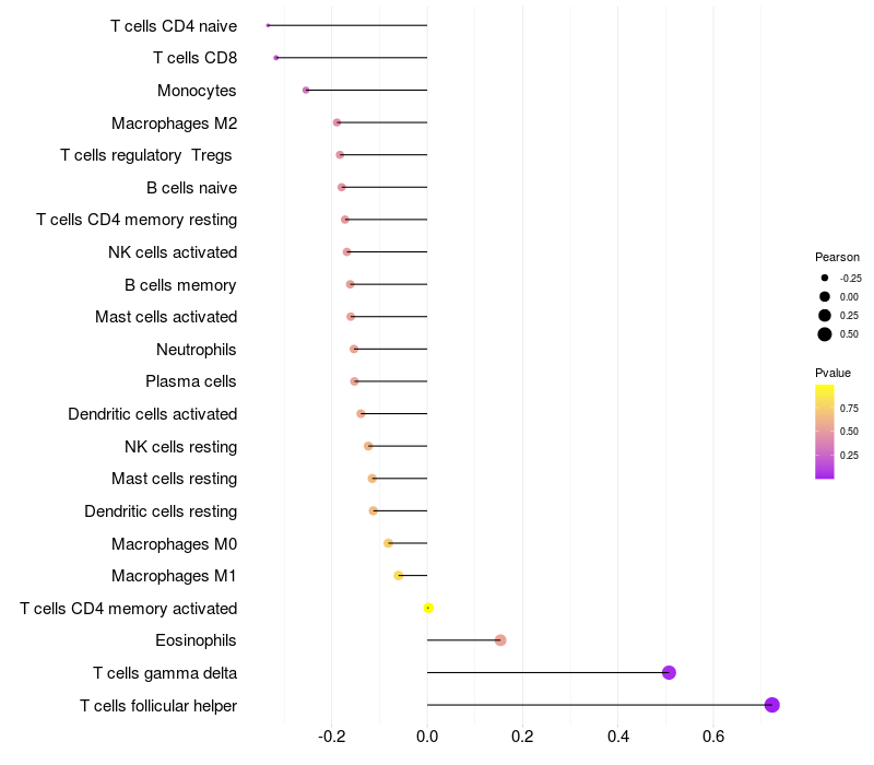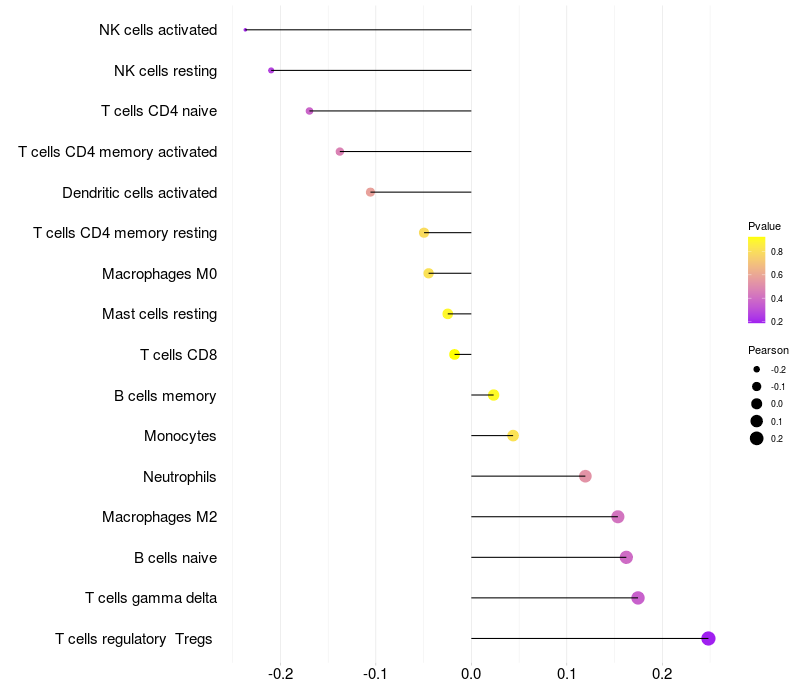 Relationship between gene expression and immune infiltrating cell level