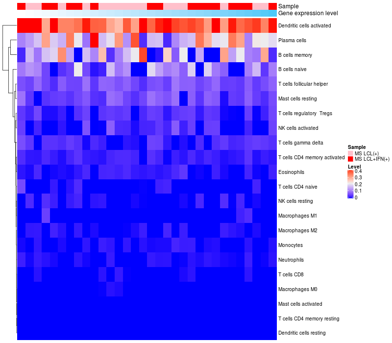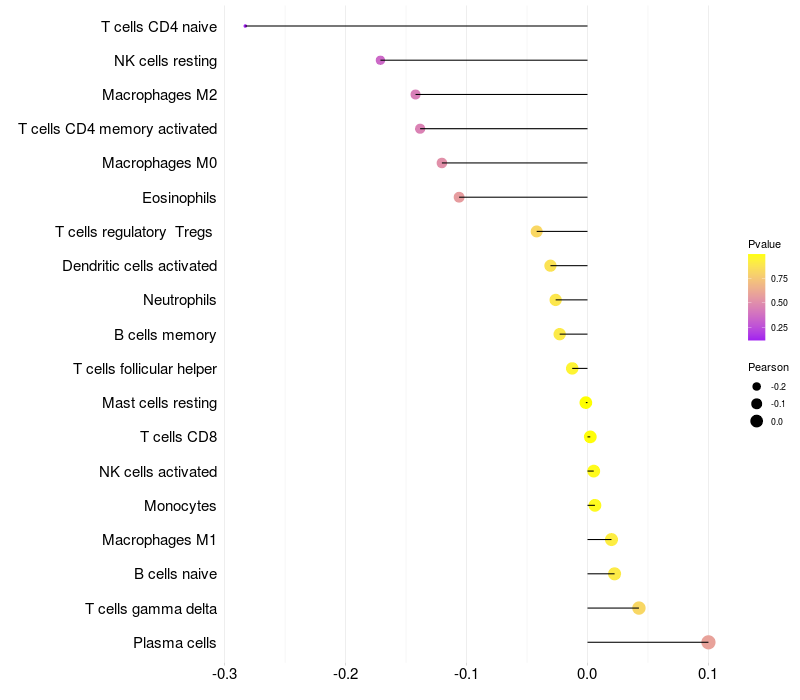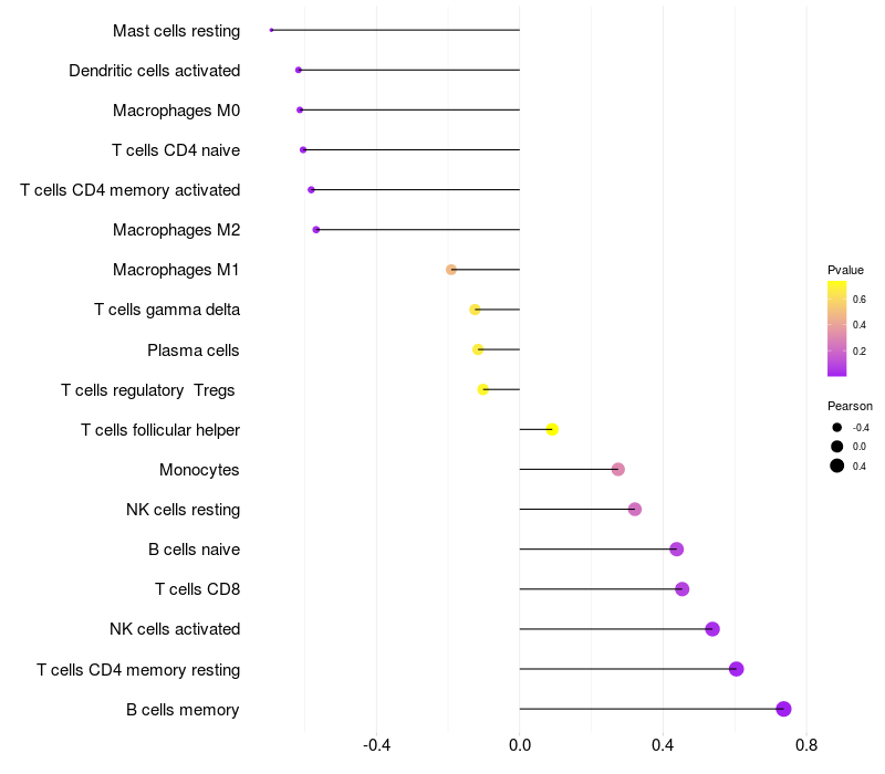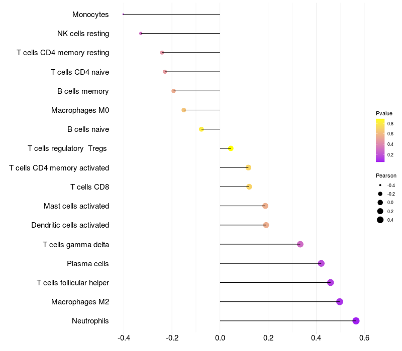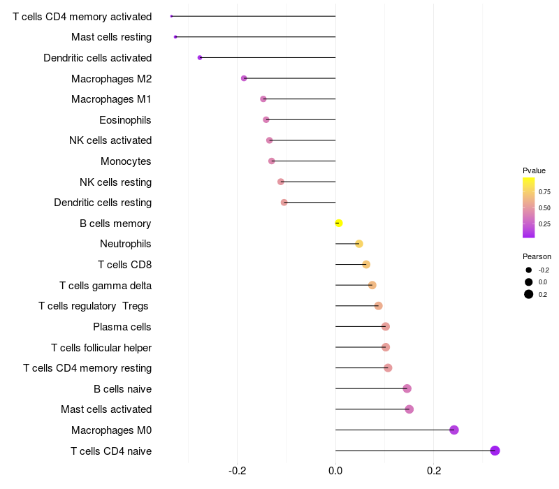 Lollipop of LOC729732 expression and immune infiltrating cell level correlation result in EBV+ samples