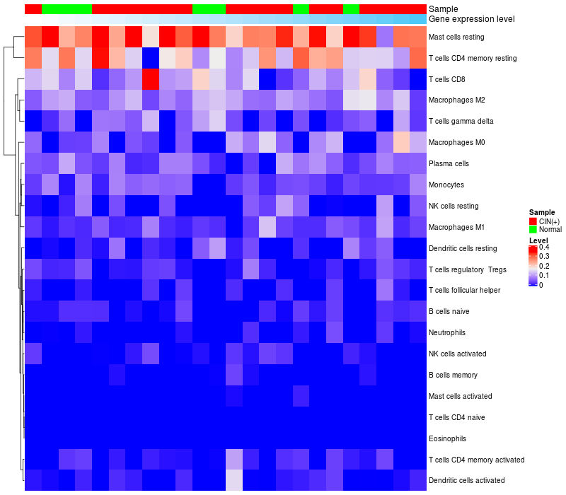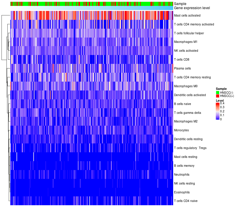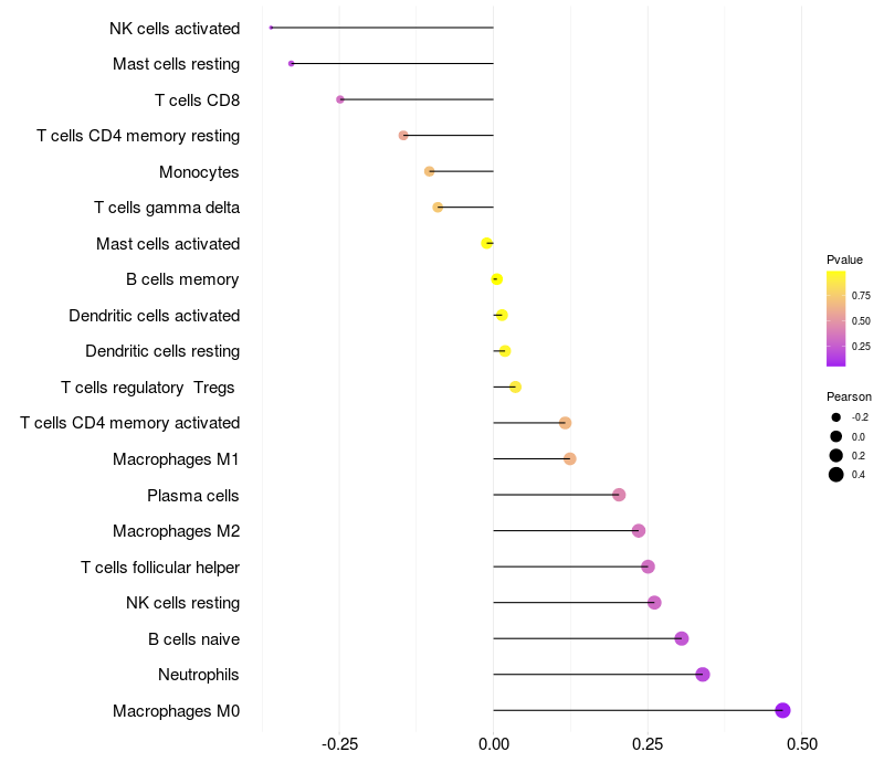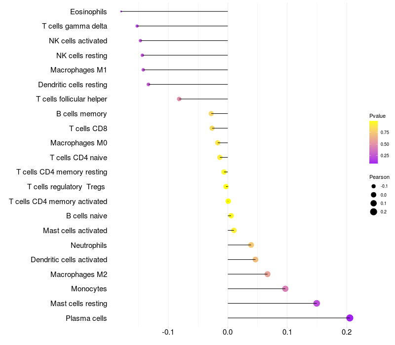 Relationship between gene expression and immune infiltrating cell level