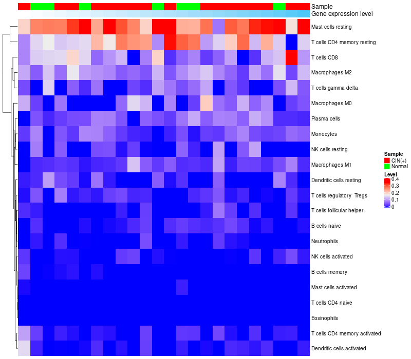 Cervical intraepithelial neoplasia (HPV+)(17), Normal(7) |