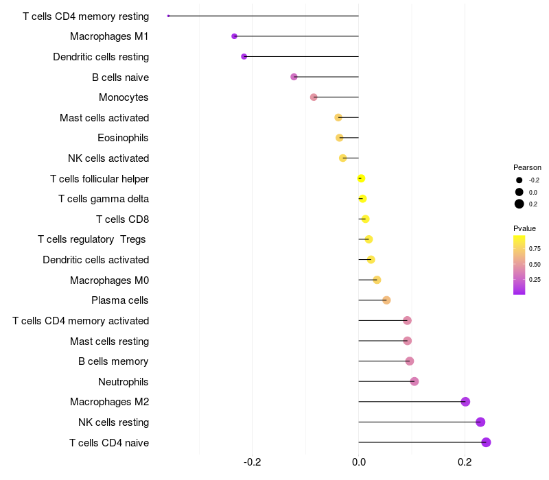 Lollipop of LONP1 expression and immune infiltrating cell level correlation result in HBV+ samples