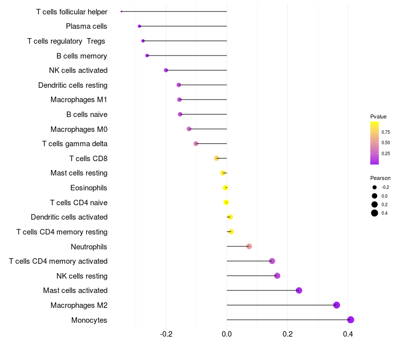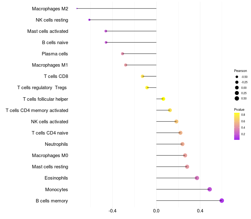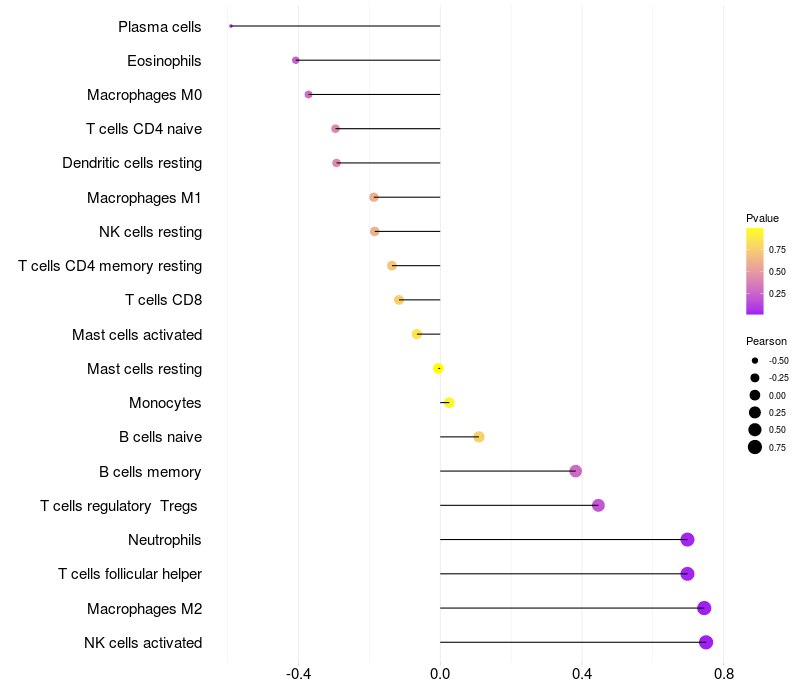Lollipop of LONRF3 expression and immune infiltrating cell level correlation result in HBV+ Liver cirrhosis samples