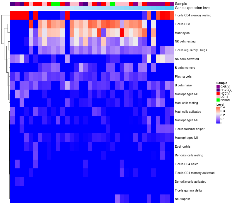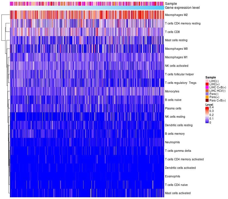 Liver hepatocellular carcinoma HCV (HBV+)(86), Liver hepatocellular carcinoma HCV (HBV-)(19), Liver hepatocellular carcinoma (HBV+)(209), Liver hepatocellular carcinoma (HBV+)(60), Paracancerous HCV (HBV+)(4), Paracancerous (HBV-)(28), Paracancerous (HBV+)(18) |