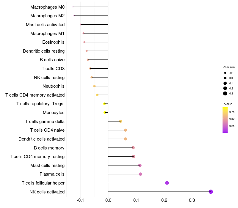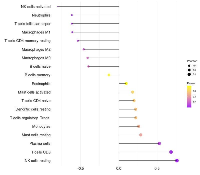 Lollipop of LOXHD1 expression and immune infiltrating cell level correlation result in HBV+ samples