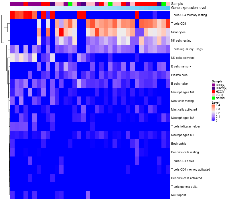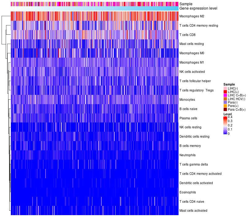 Liver hepatocellular carcinoma HCV (HBV+)(86), Liver hepatocellular carcinoma HCV (HBV-)(19), Liver hepatocellular carcinoma (HBV+)(209), Liver hepatocellular carcinoma (HBV+)(60), Paracancerous HCV (HBV+)(4), Paracancerous (HBV-)(28), Paracancerous (HBV+)(18) |