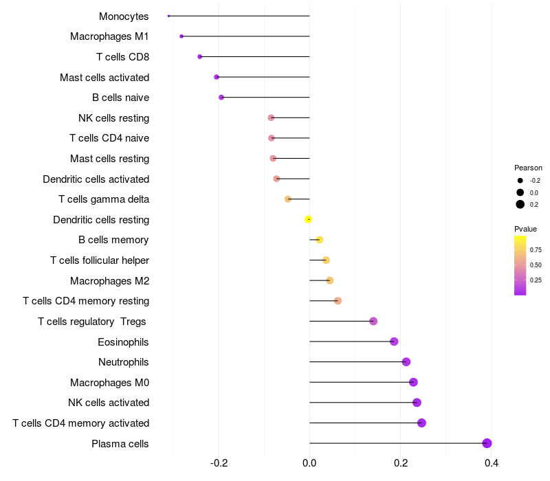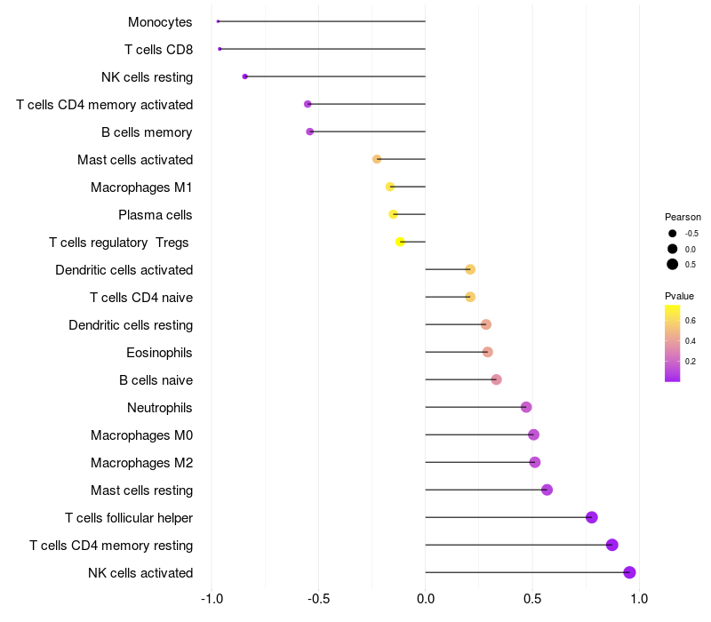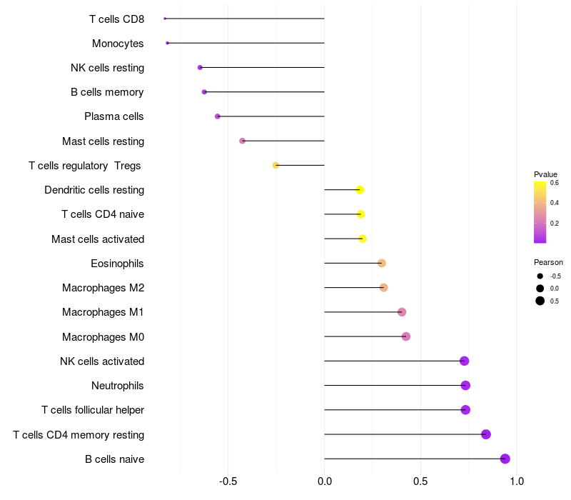Lollipop of LOXL2 expression and immune infiltrating cell level correlation result in HBV+ samples