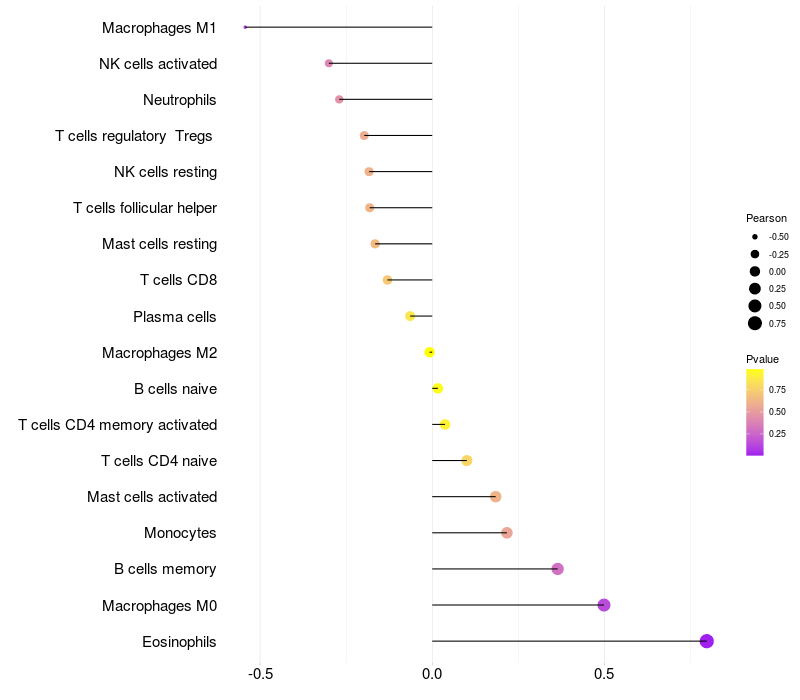 Lollipop of LOXL2 expression and immune infiltrating cell level correlation result in HBV+ Liver cirrhosis samples