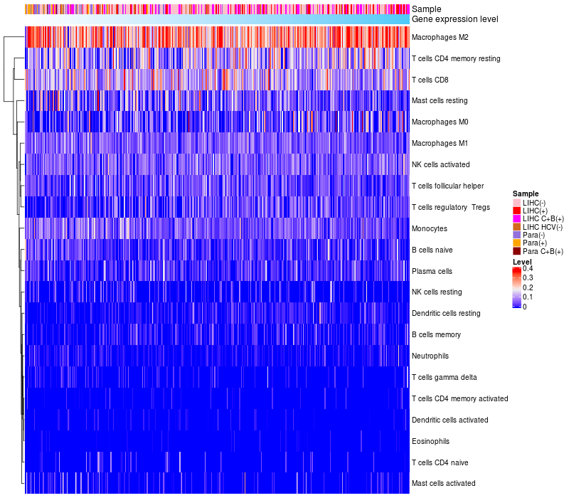 Liver hepatocellular carcinoma HCV (HBV+)(86), Liver hepatocellular carcinoma HCV (HBV-)(19), Liver hepatocellular carcinoma (HBV+)(209), Liver hepatocellular carcinoma (HBV+)(60), Paracancerous HCV (HBV+)(4), Paracancerous (HBV-)(28), Paracancerous (HBV+)(18) |