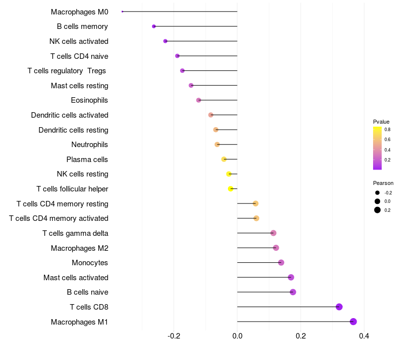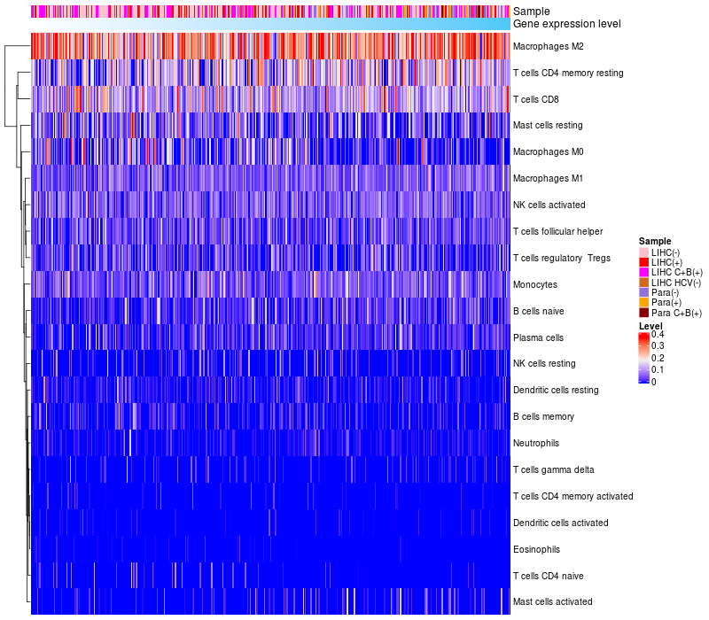 Relationship between gene expression and immune infiltrating cell level
