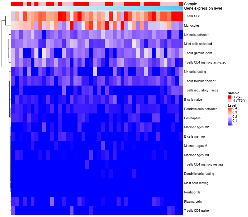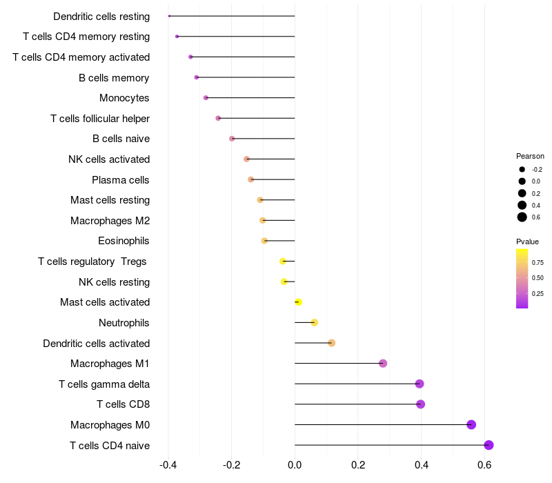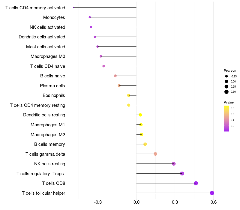 Relationship between gene expression and immune infiltrating cell level