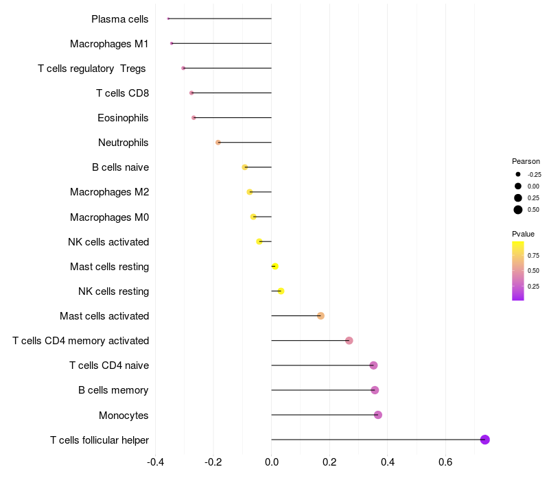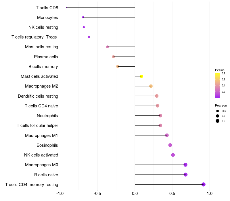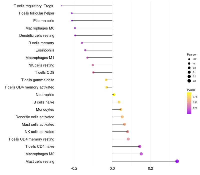 Lollipop of LRIG1 expression and immune infiltrating cell level correlation result in HBV+ Liver cirrhosis samples