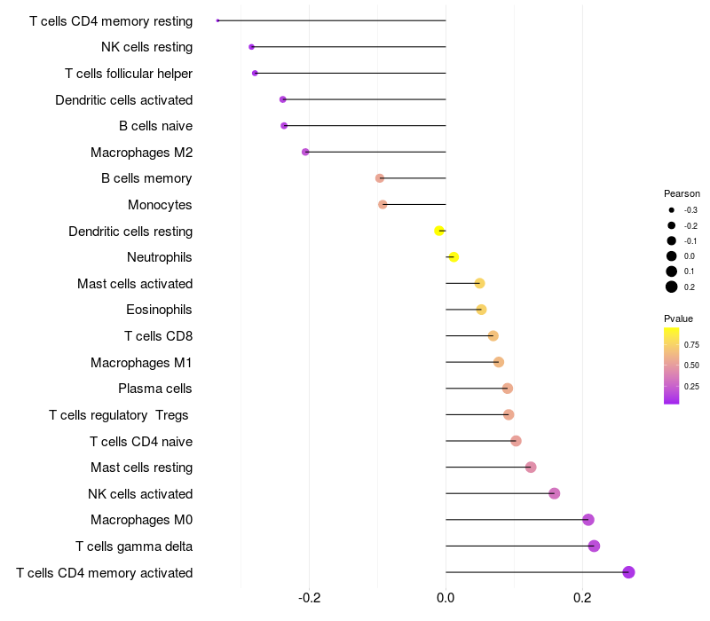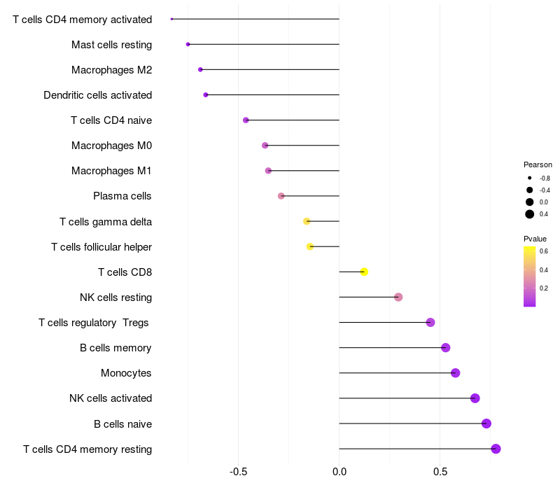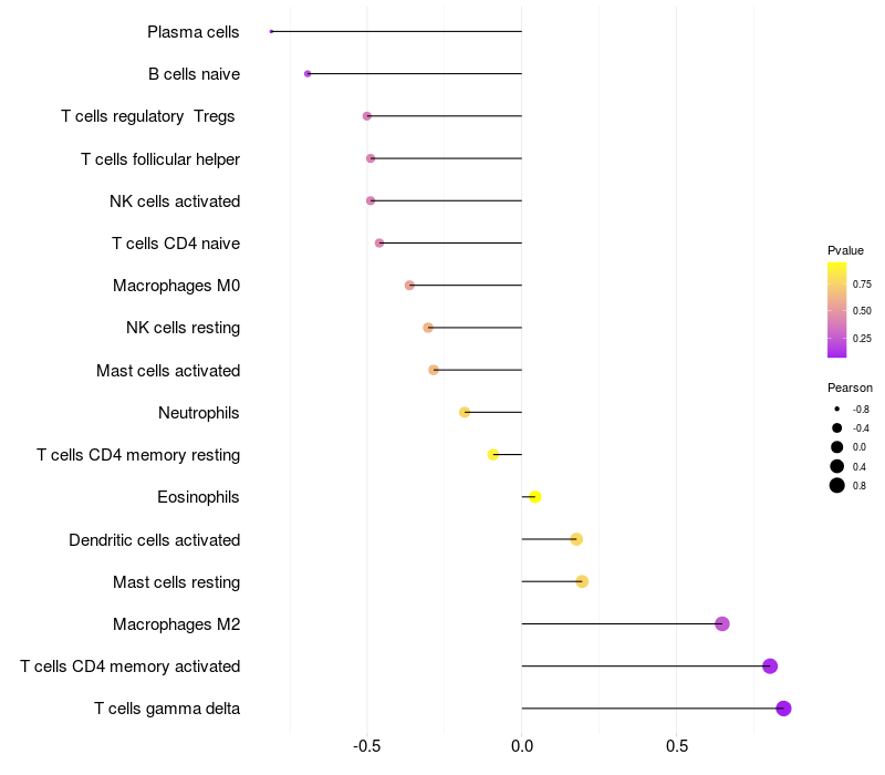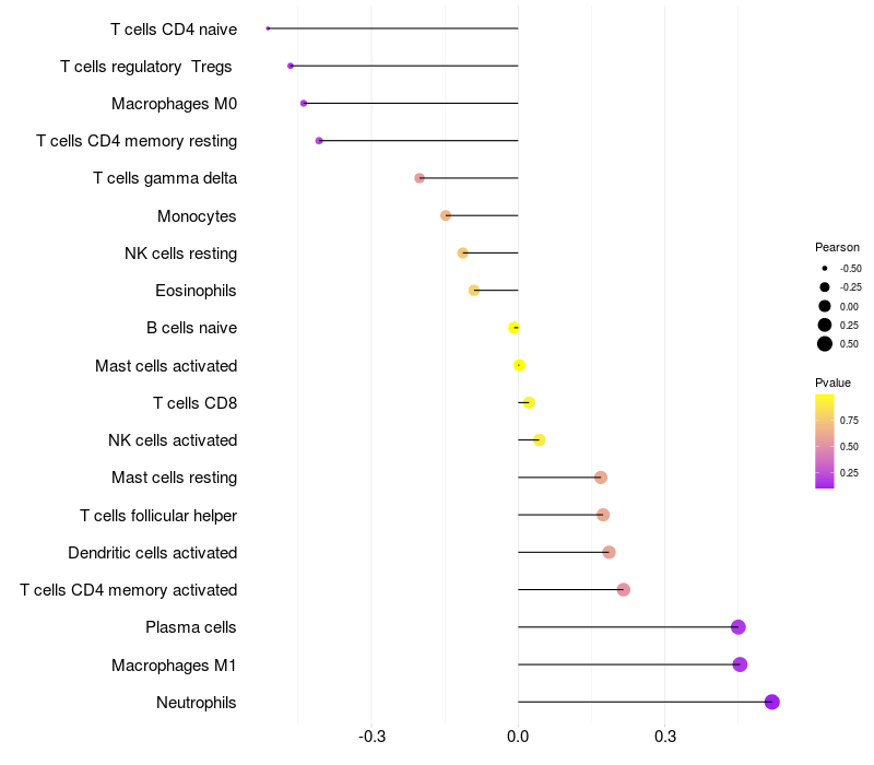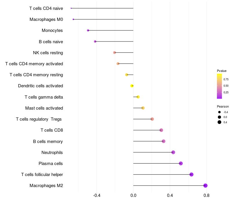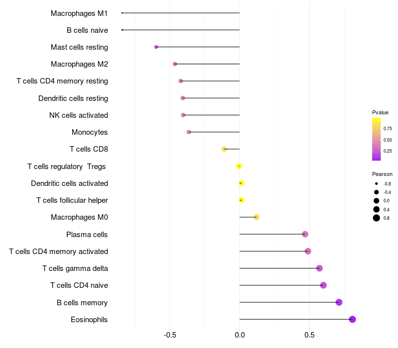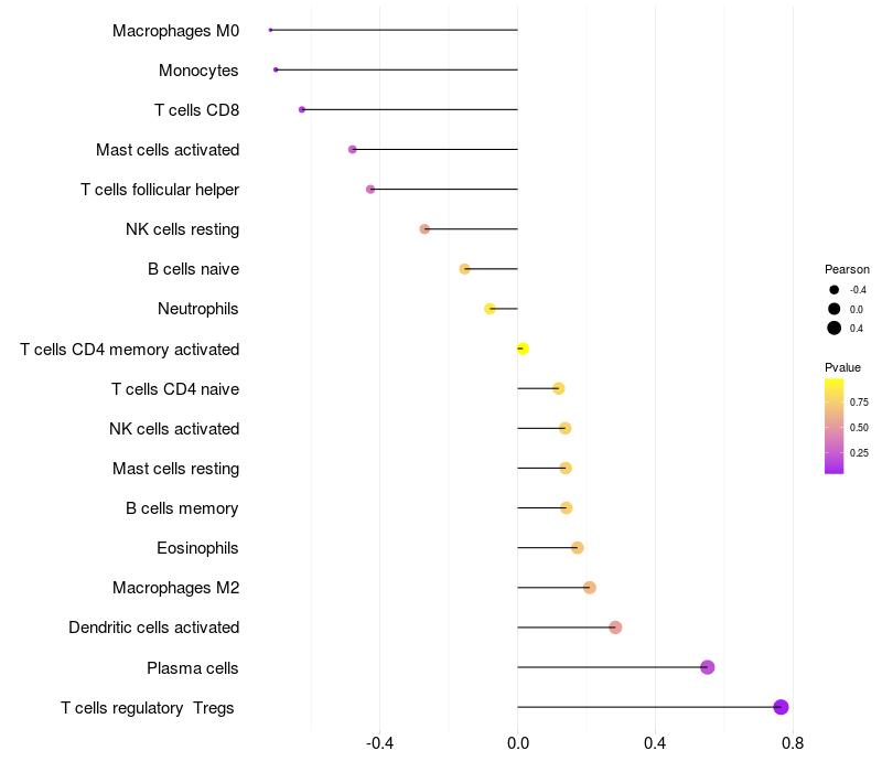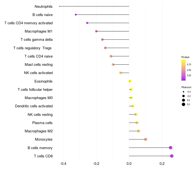 Lollipop of LRPAP1 expression and immune infiltrating cell level correlation result in EBV+ samples